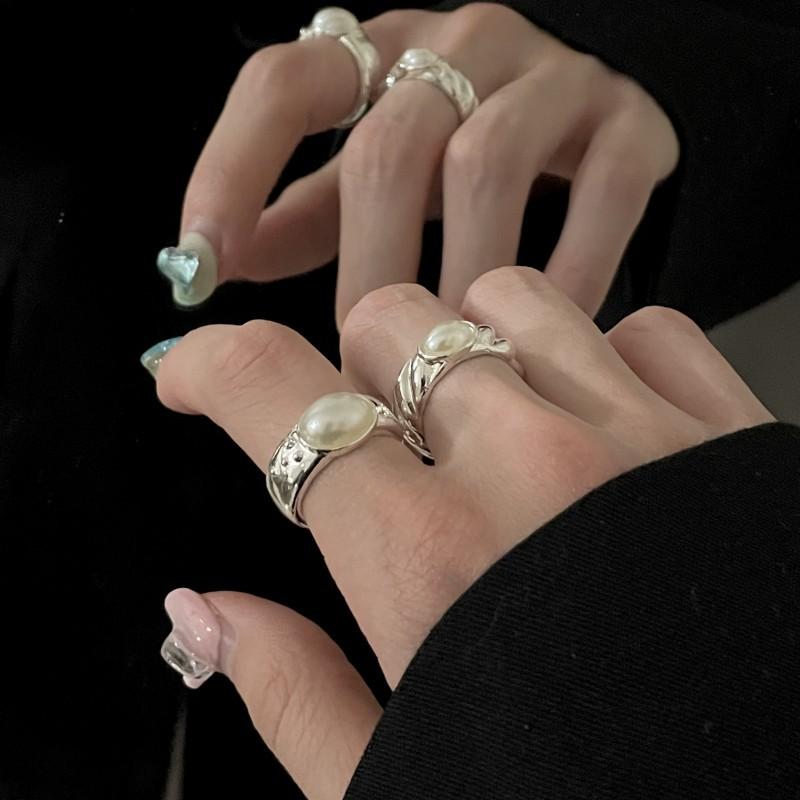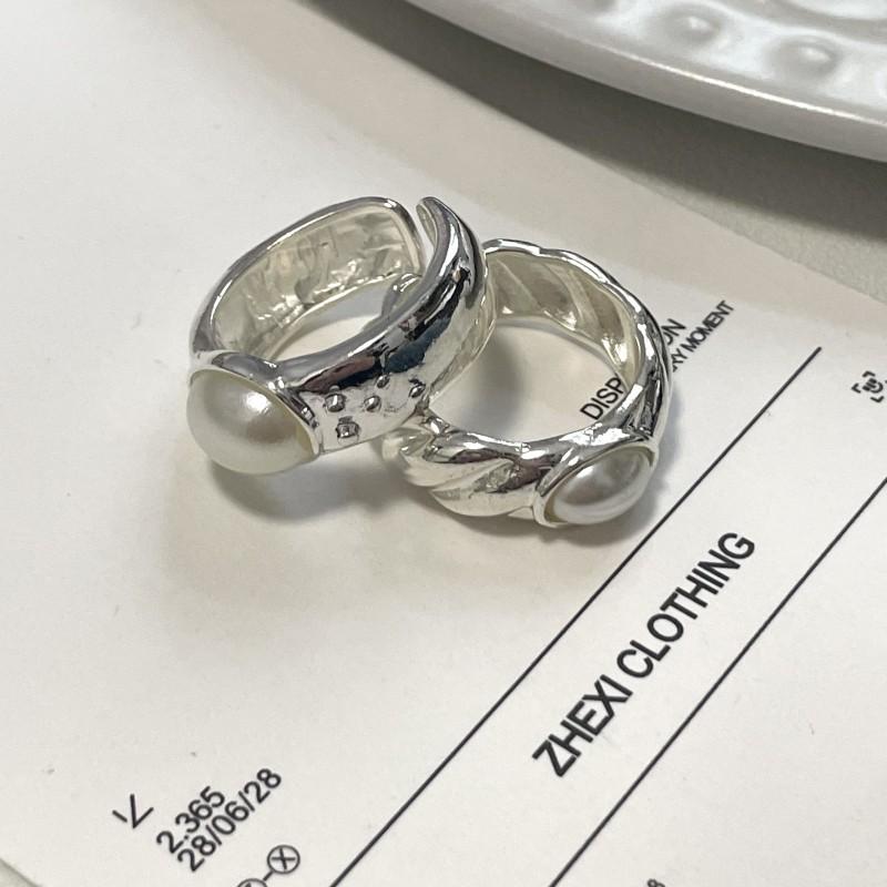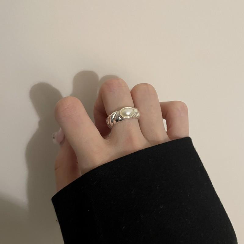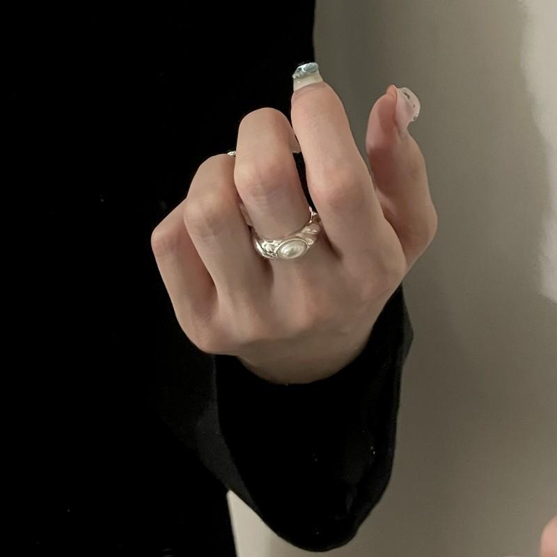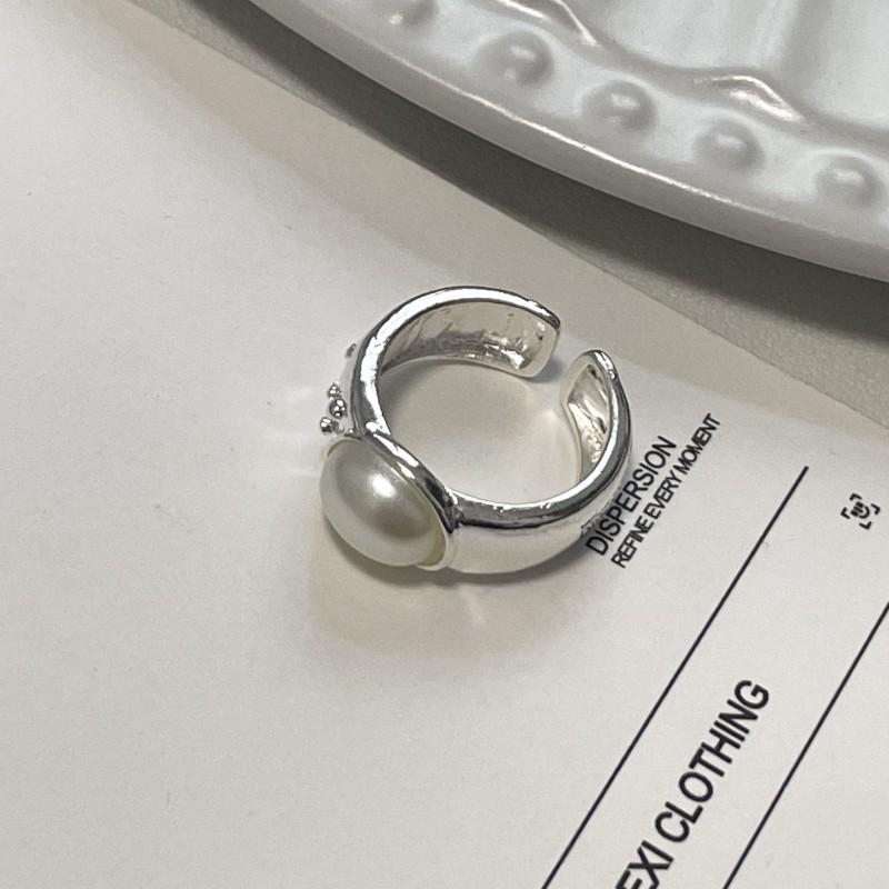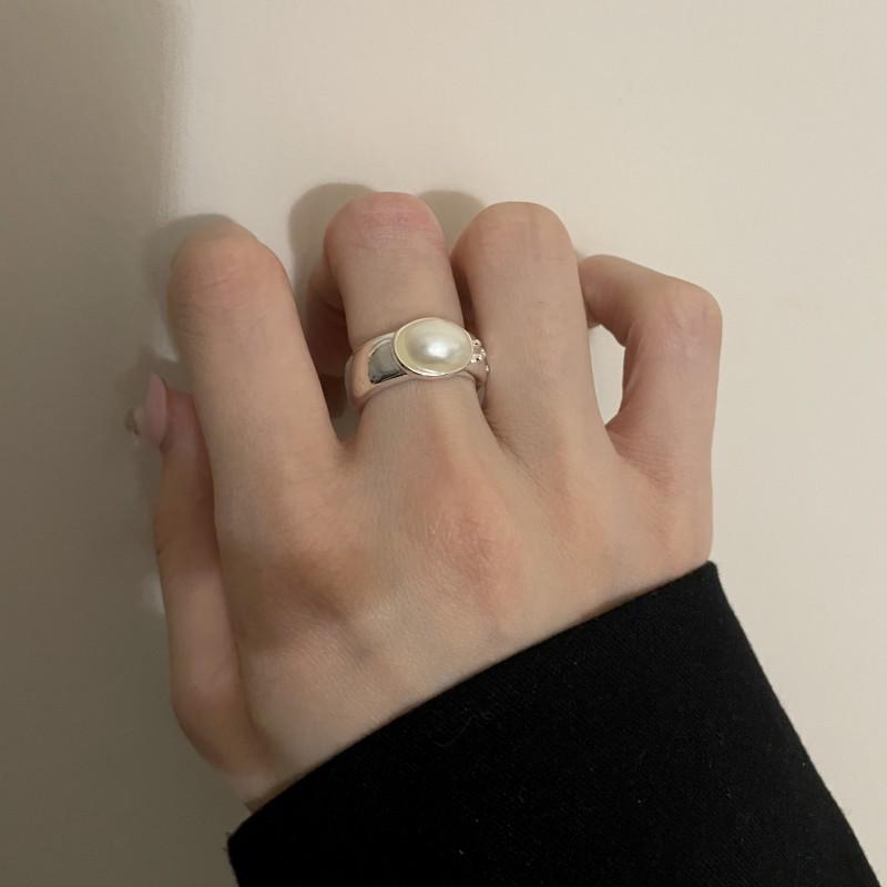 Compre Anel de pérola de design de nicho requintado de luxo leve moda estilo frio abertura ajustável anel de dedo de dieta jóias simples no atacado no Joom.pro