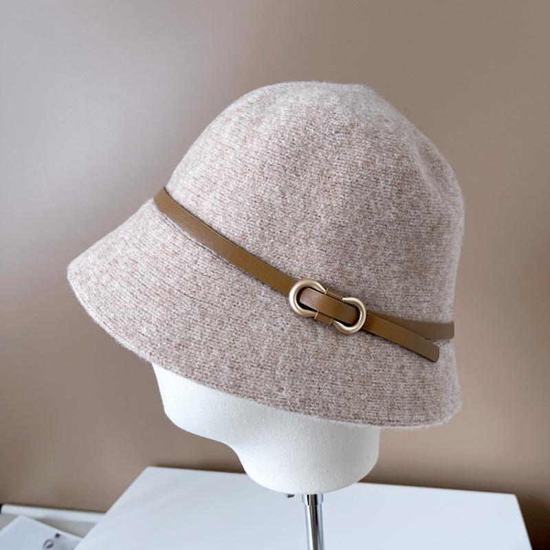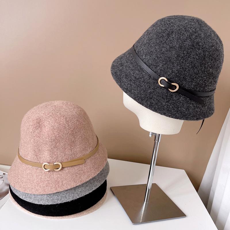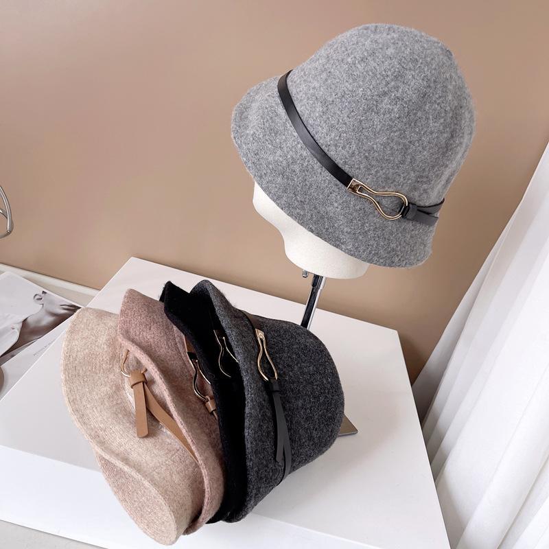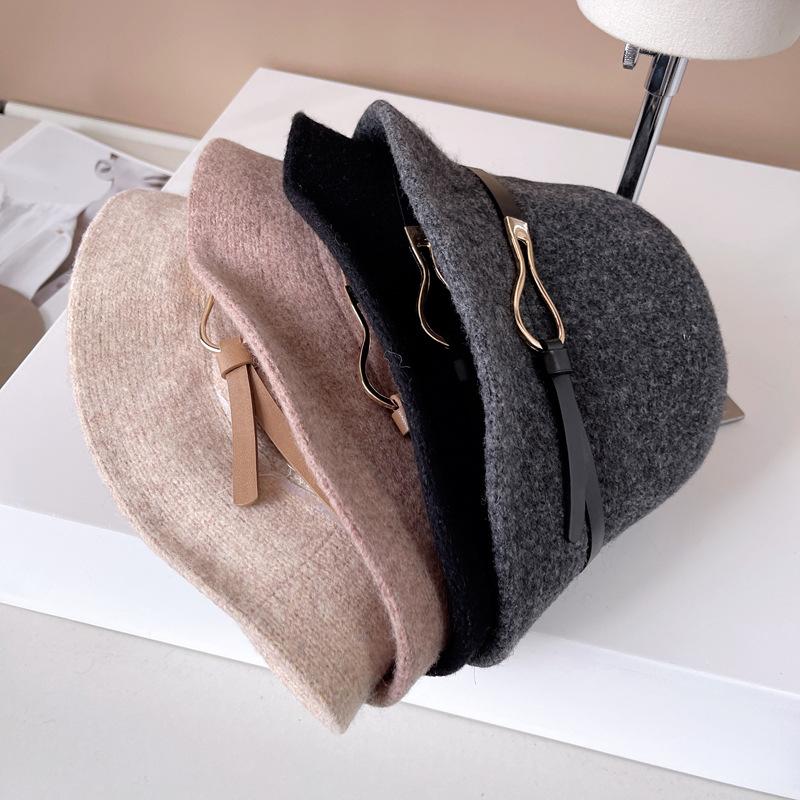 Estilo Japonês Frente Grande Traseira Pequeno Chapéu de Pescador Outono e Inverno Quente Chapéu de Malha Gota de Água Gota de Água Fivela de Cinto Bacia Chapéu Lã Chapéu