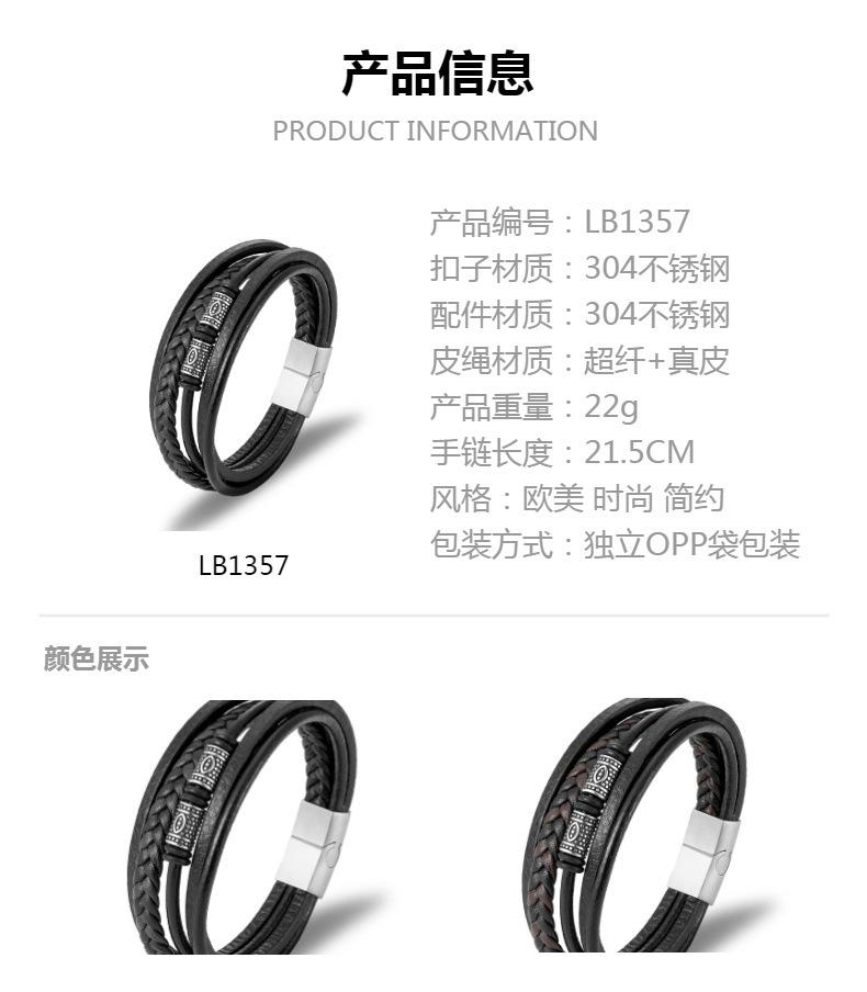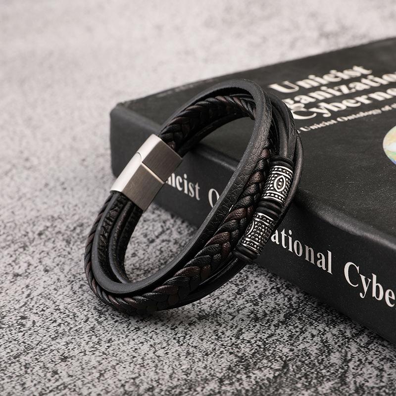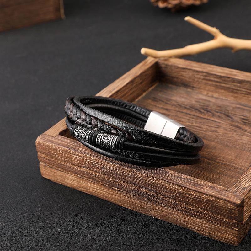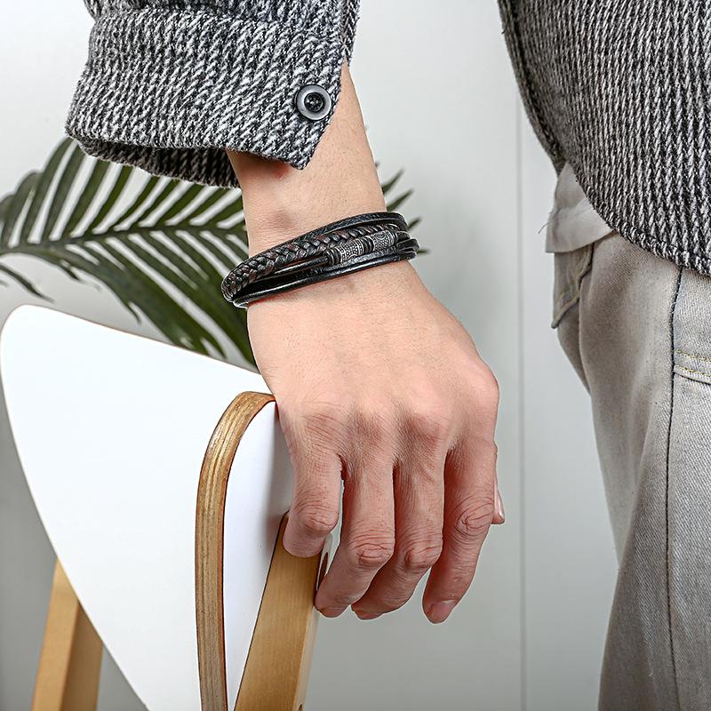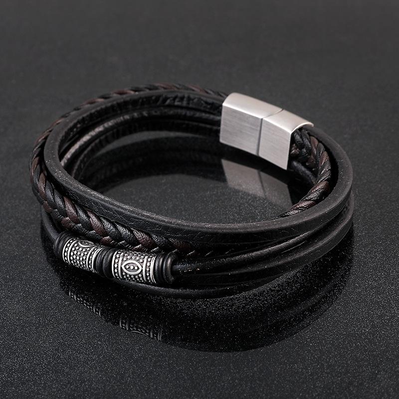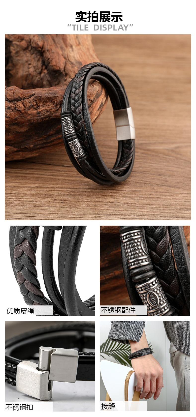 Pulseira de aço inoxidável trançada de titânio e-commerce internacional, fivela magnética de aço inoxidável masculina, pulseira de couro multicamadas, atacado