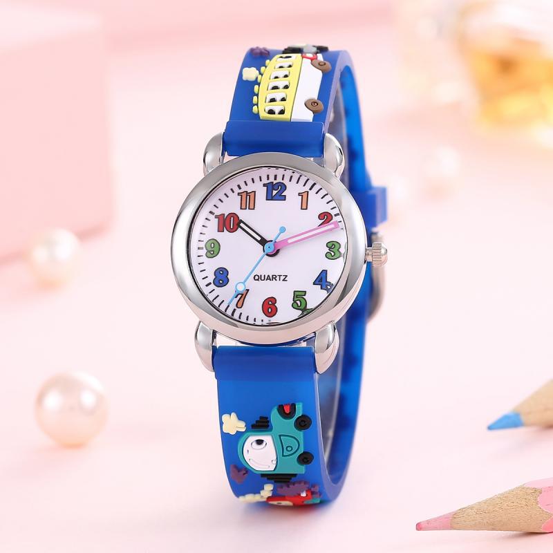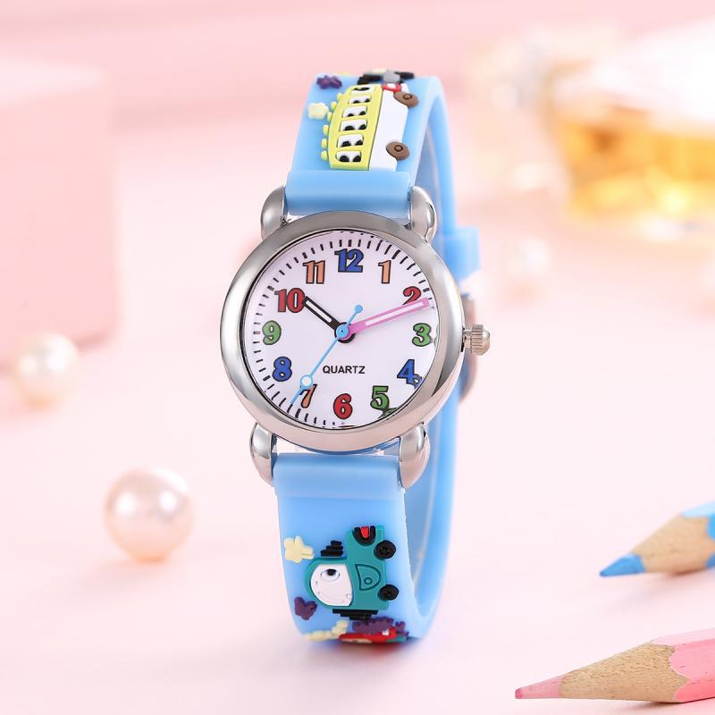 Relógio colorido de estudante de desenho animado de carro de 12 dígitos para crianças