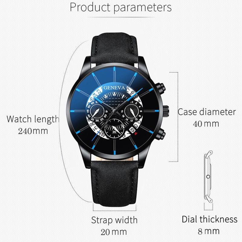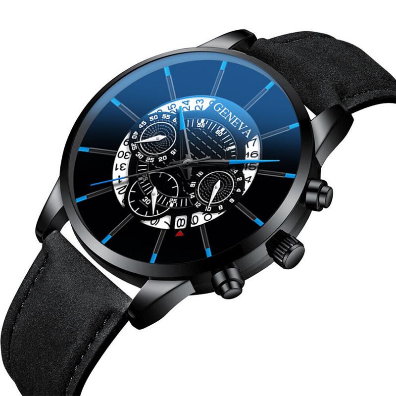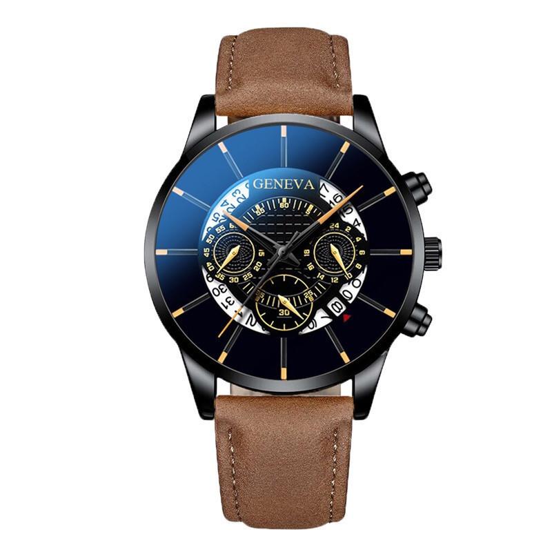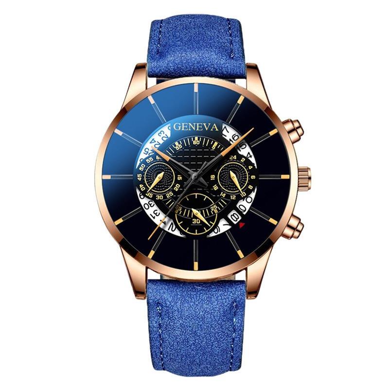 Atacado de fábrica de três olhos agulha azul relógio de pulso relógio masculino cinto de lazer relógio de quartzo comércio exterior relógio calendário de negócios relógio homens