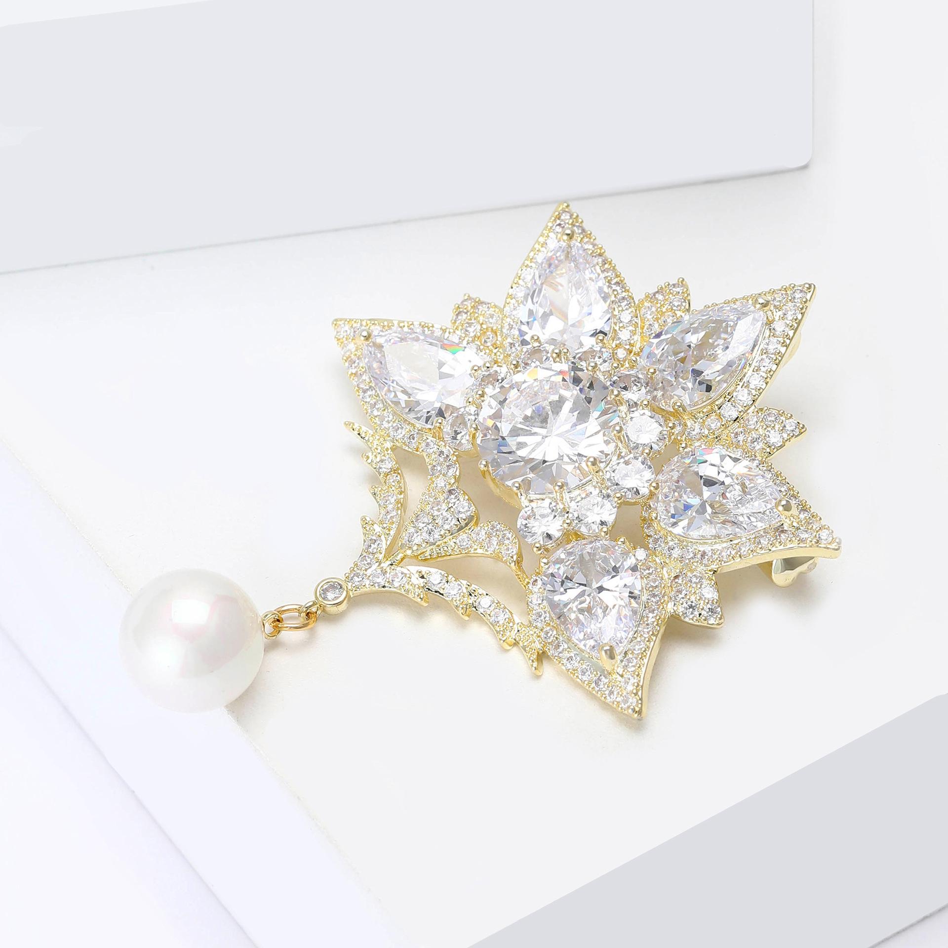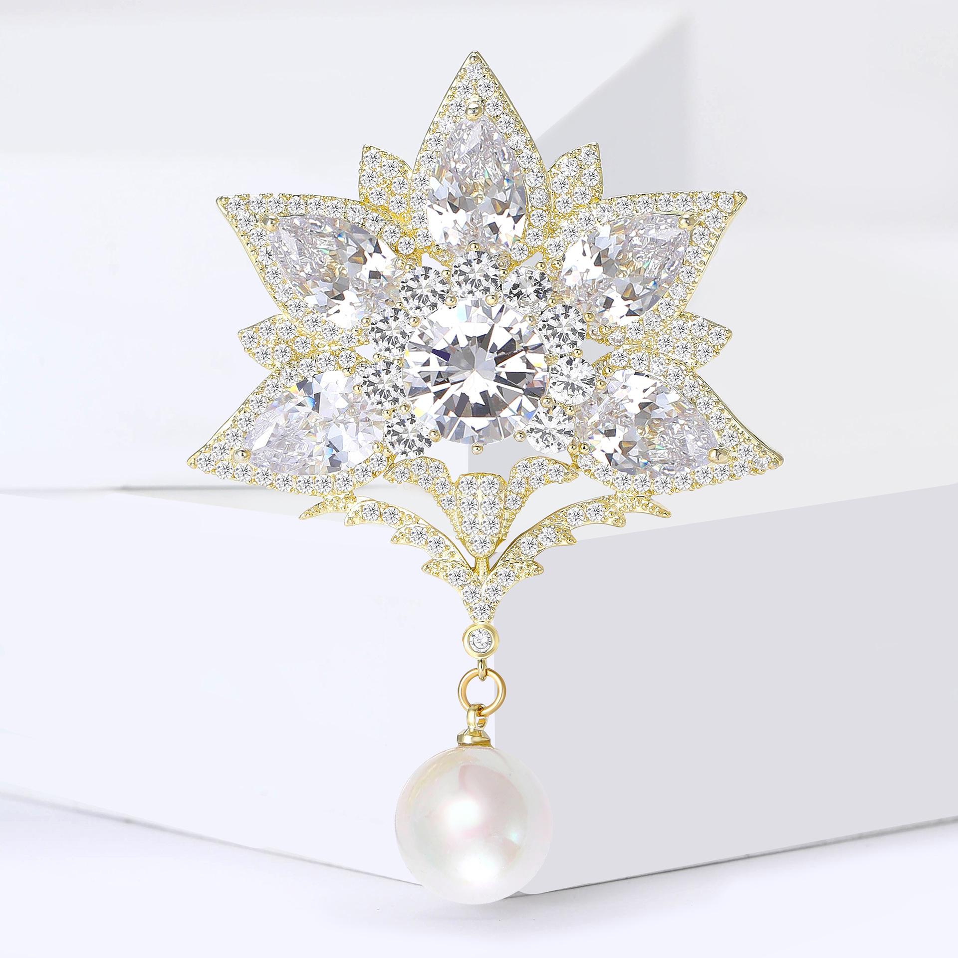 Novo broche de pingente de zircão de cobre estilo palácio de luxo temperamento de alta qualidade para senhoras terno casaco corsage joias alfinete