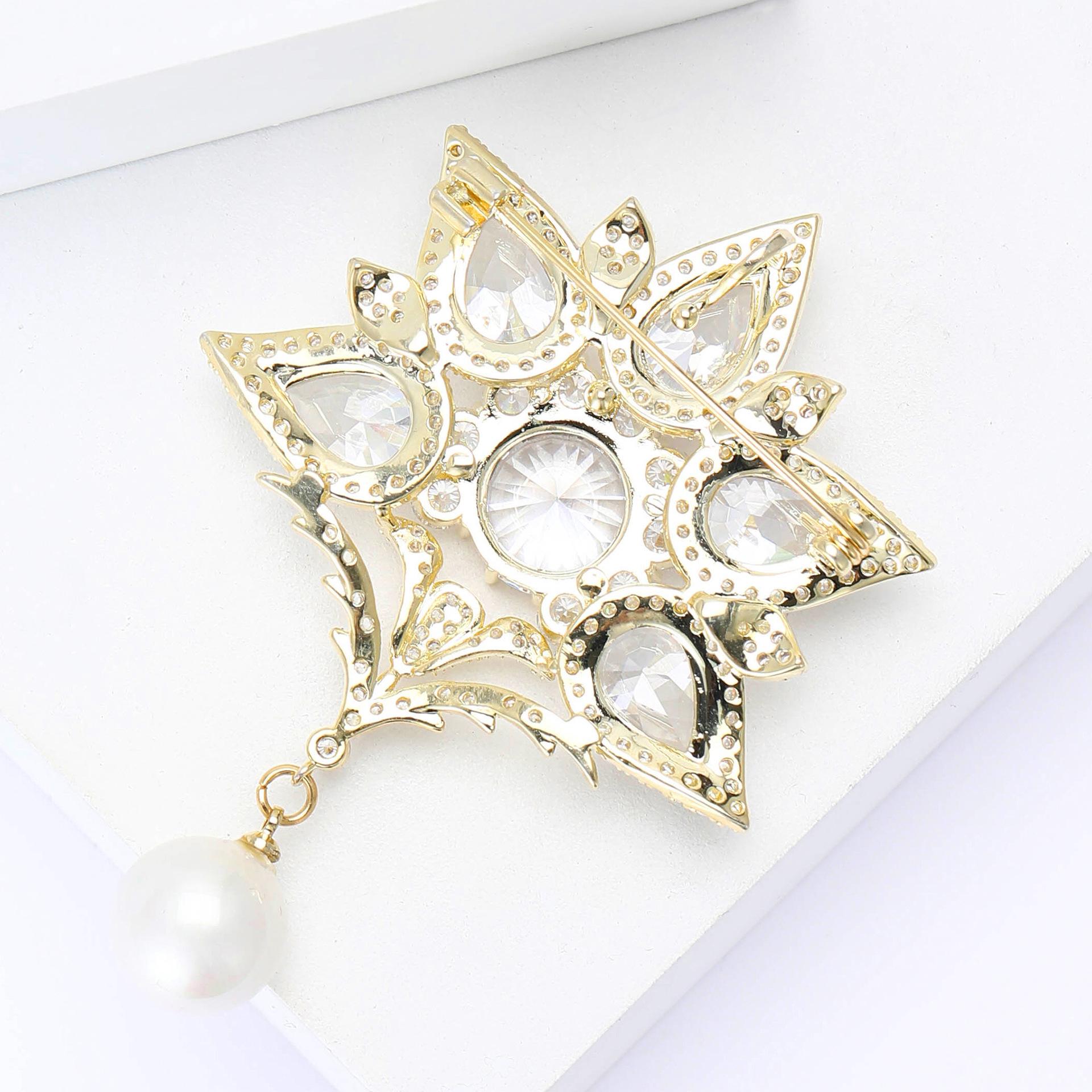 Compre Novo broche de pingente de zircão de cobre estilo palácio de luxo temperamento de alta qualidade para senhoras terno casaco corsage joias alfinete no atacado no Joom.pro