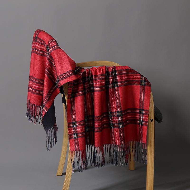 Cachecol Xadrez de Outono e Inverno em Caxemira Sintética, Xale Espesso e Quente, Cachecol Longo com Franjas da Moda para Homens e Mulheres, Aquecedor de Pescoço