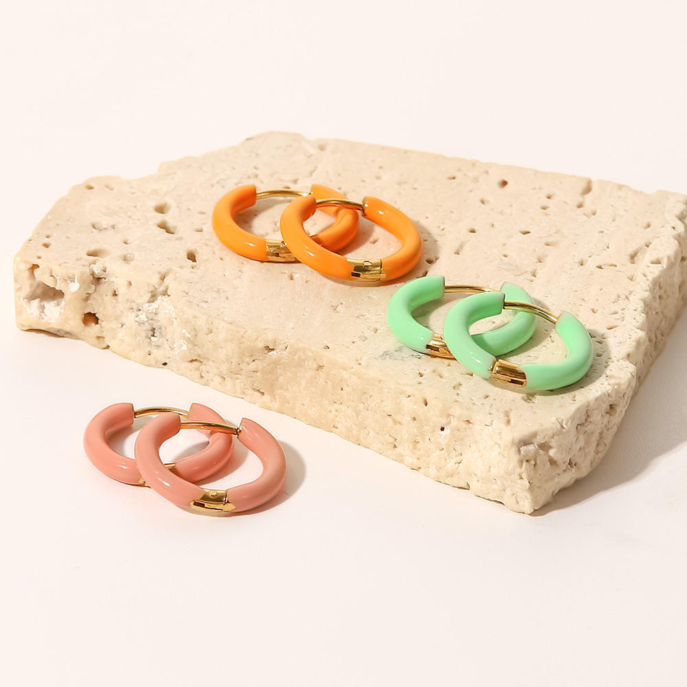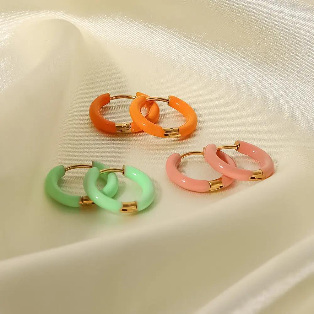 Brincos de gota de óleo coloridos transfronteiriços europeus e americanos, brincos de cores da moda, brincos de titânio, aço gelatinoso, brincos de moda feminina, brincos de anel, brincos de fivela de orelha