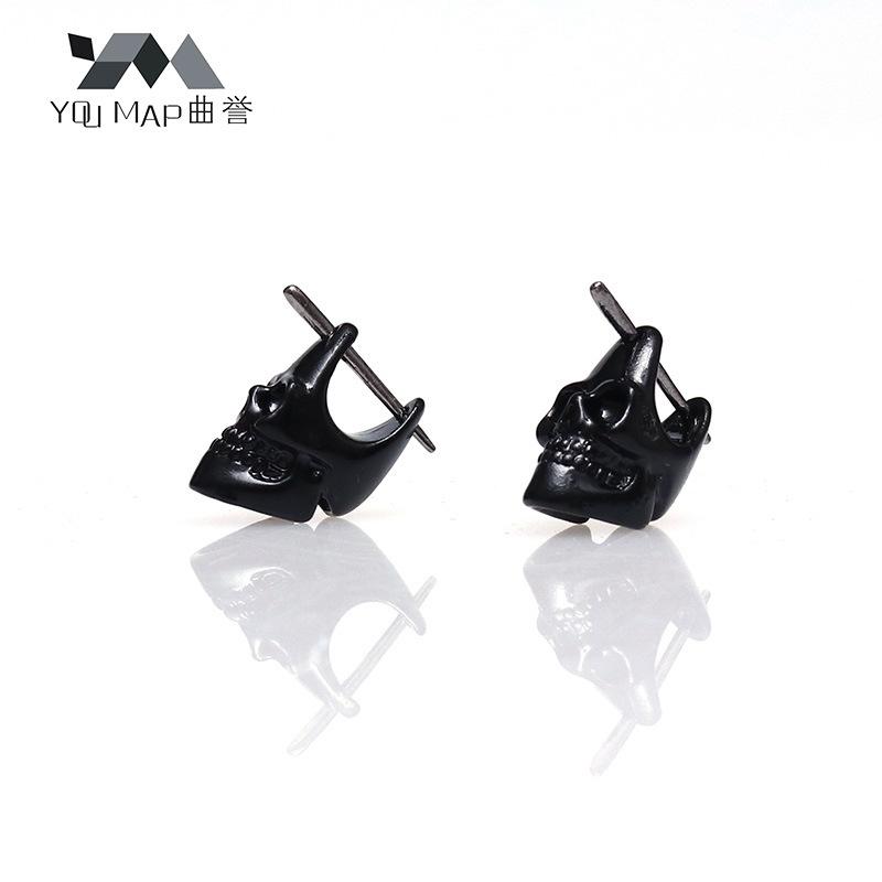 Nome do produto: Brincos de caveira lisa punk hip-hop rock tendência halteres brincos homens e mulheres joias personalizadas