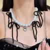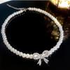 Colar de pérolas pequenas com costura de strass estilo francês, corrente de clavícula feminina, estilo coreano, elegante, design de celebridade da internet, gargantilha