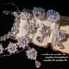 Colar de gota d'água com flor de safira Topa brilhante, banhado a ouro 18K, brincos de zircônia em árvore de Natal, médio e antigo