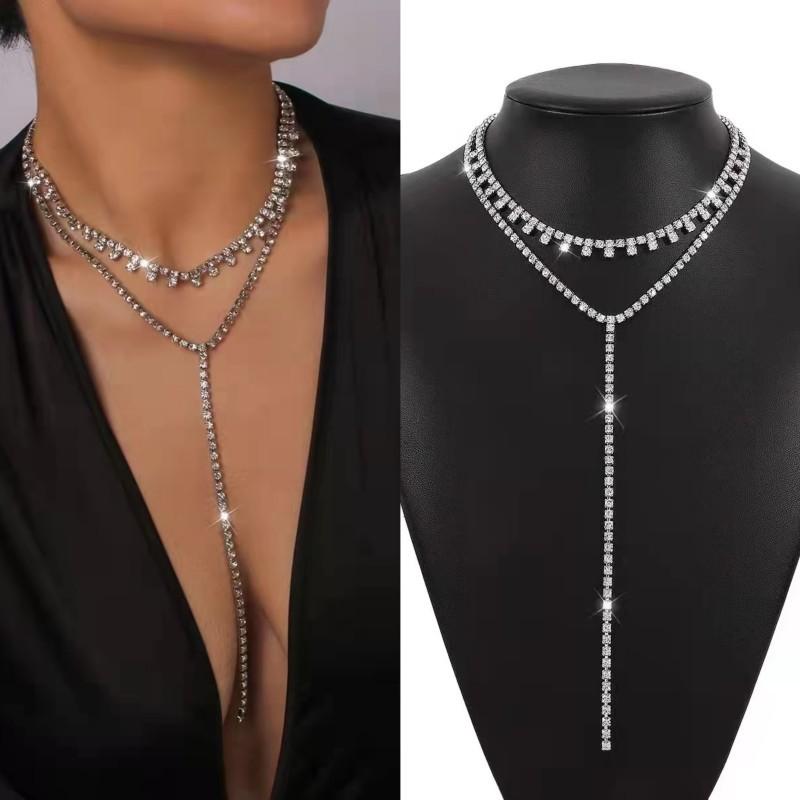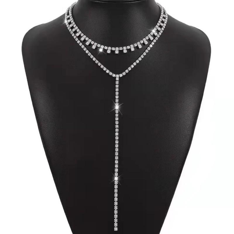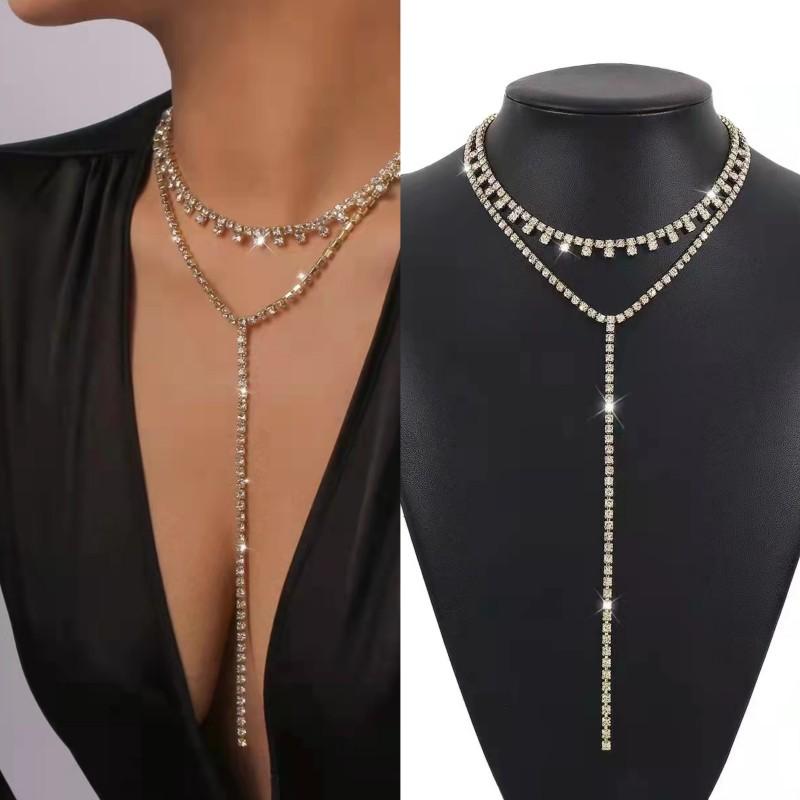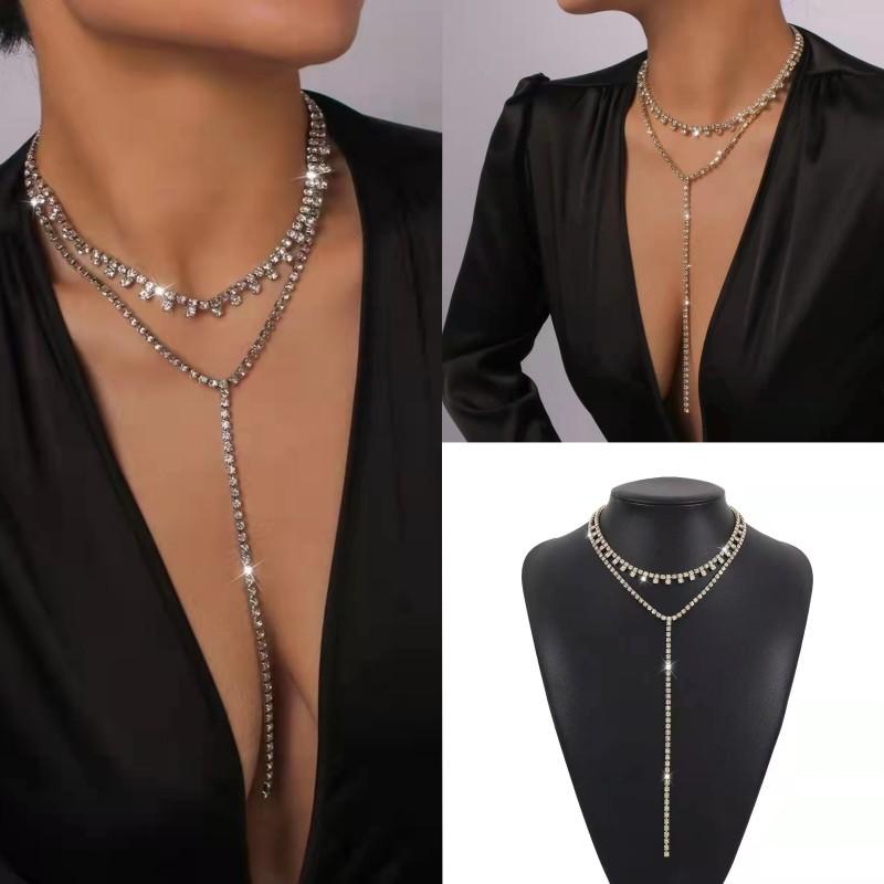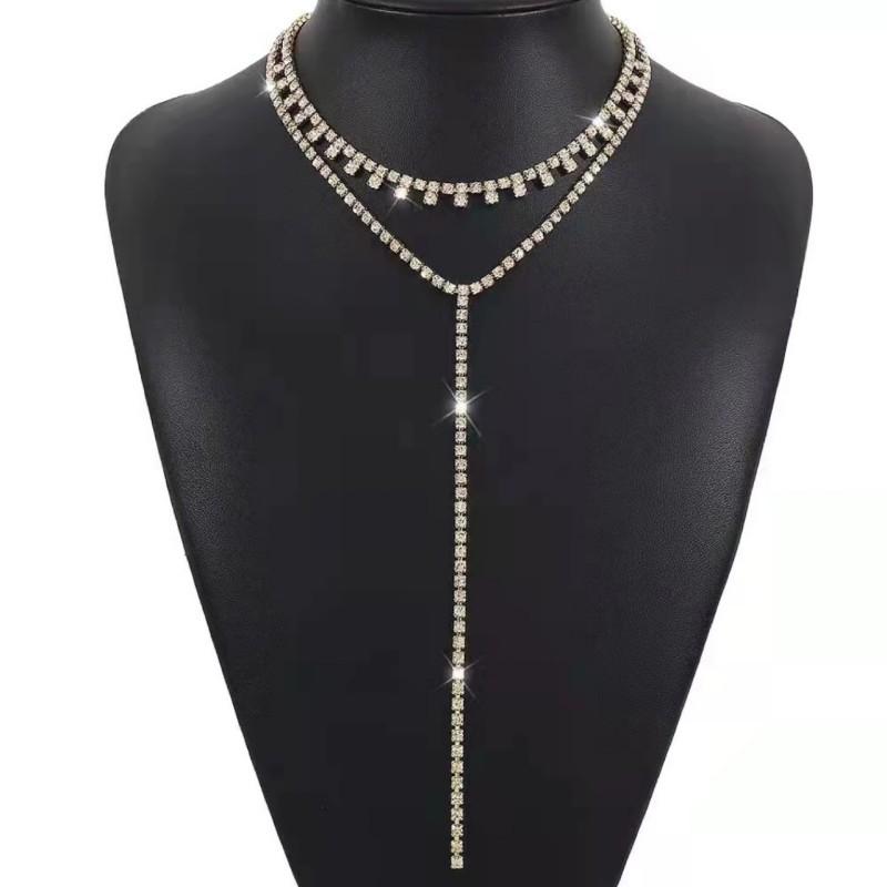 Estilo europeu e americano personalidade da moda super brilhante borla cheia de diamante dupla camada clavícula corrente feminina luxo leve design elegante colar de alta qualidade