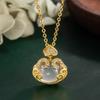 Colar de cadeado longo de vida com cadeado Ruyi Ping An de calcedônia branca antiga, design de nicho retrô de alta qualidade, novo estilo chinês, corrente de clavícula
