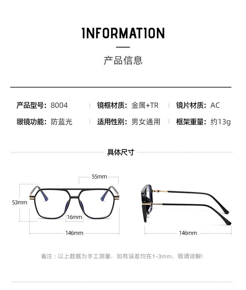 Óculos para Miopia Anti-Luz Azul 2025 Armação de Óculos Feminina de Barra Dupla Óculos de Temperamento de Celebridade da Internet Óculos de Lente Plana para Afinar o Rosto Grande