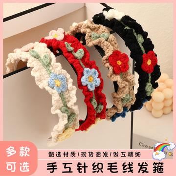 2024 acessórios para cabelo infantil inverno tricotado à mão lã bandana senhoras bonito menina coração lã flor largo cocar feminino