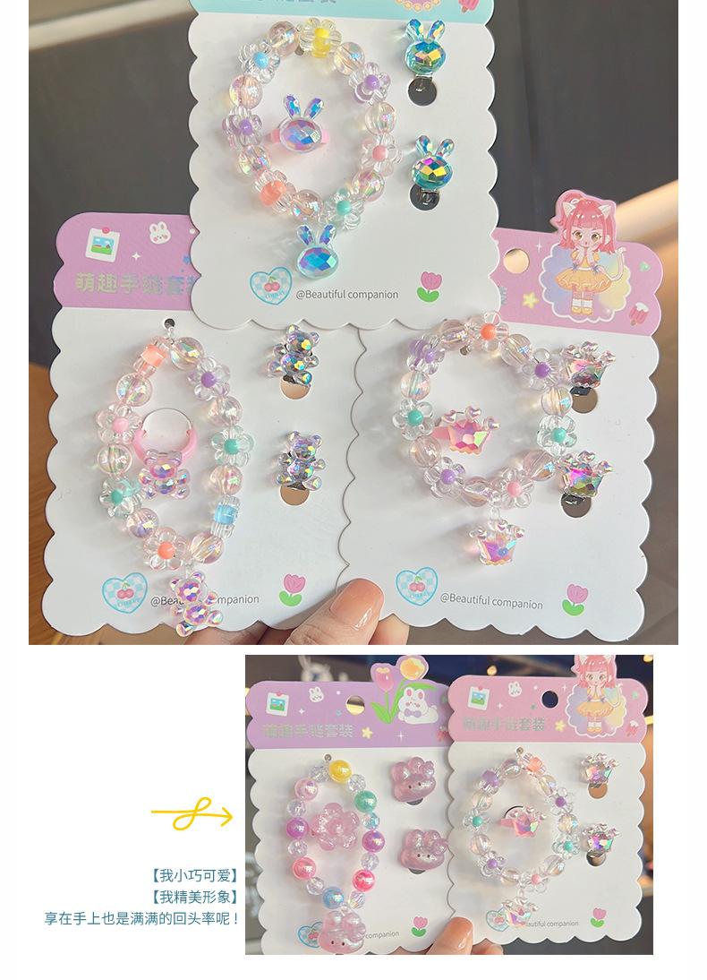 Pulseira infantil estilo coreano, moda princesa, acessórios para meninas, joias fofas de coração rosa para bebês