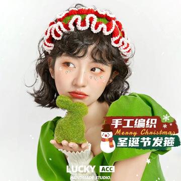 Tiara de Natal tecida à mão, acessórios para cabelo infantil, doce e fofa, floresta, outono e inverno, faixa de cabeça de pelúcia, rede, foto de celebridade feminina