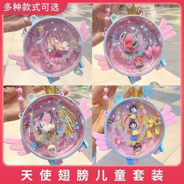 Colar de asas de anjo para crianças Conjunto de joias para meninas Conjunto de joias para princesinha Conjunto de grampos de cabelo de desenho animado para meninas Conjunto de elásticos