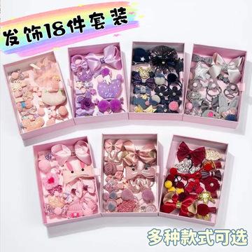 Presente de ano novo laço coelho grampo de cabelo acessórios para cabelo infantil cocar conjunto de 18 peças caixa de presente menina franja grampo de cabelo