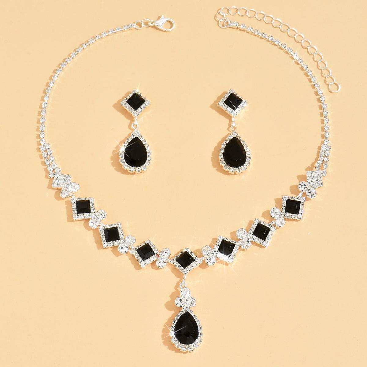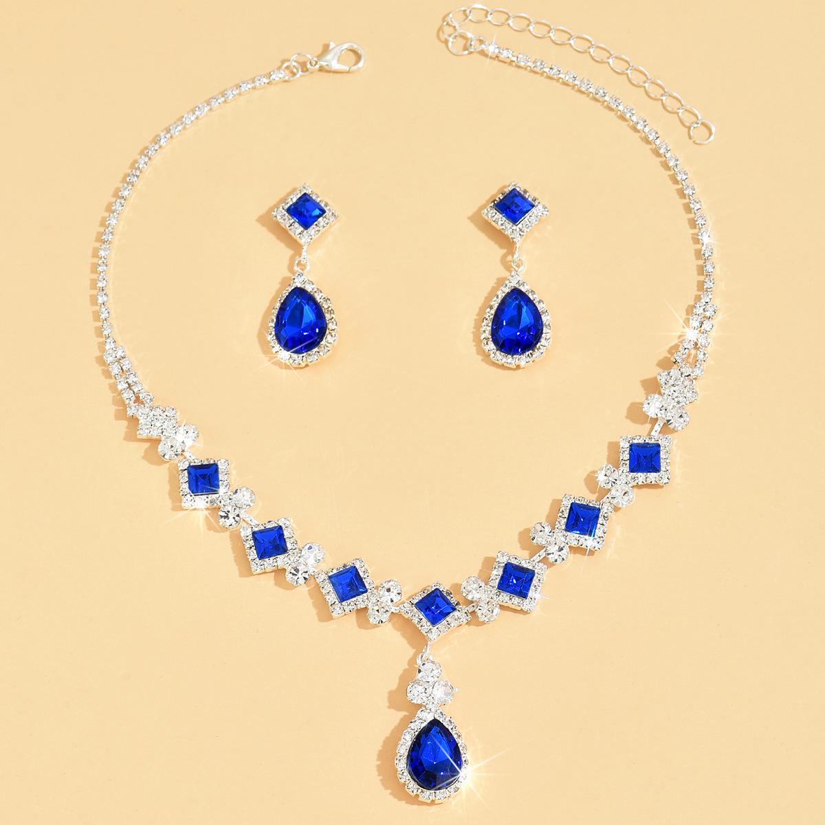 Terno de joias de noiva europeu e americano, terno de joias femininas, banquete, festa de casamento, elegante, colar, brincos