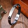 Jóias transfronteiriças atacado moda coreana simples pulseira de corda de couro preto diy pulseira de couro curvo de aço inoxidável masculino pulseira de couro de marca