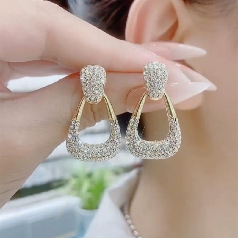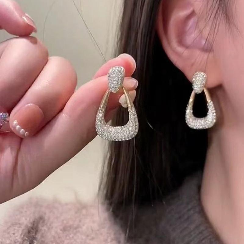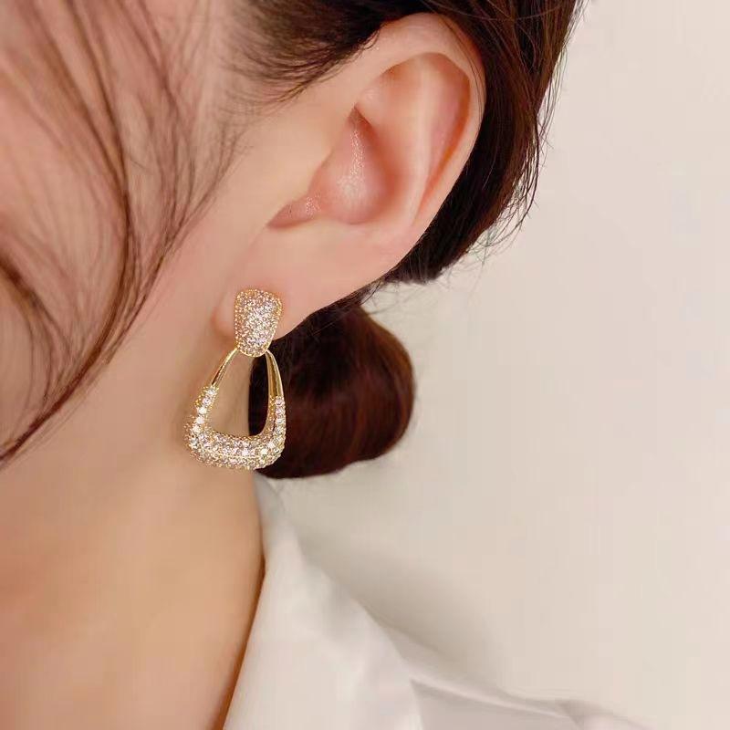 Estilo coreano luz moda de luxo cheio de diamante geométrico brincos design de nicho brincos high-end mulheres nova moda all-match orelha jóias