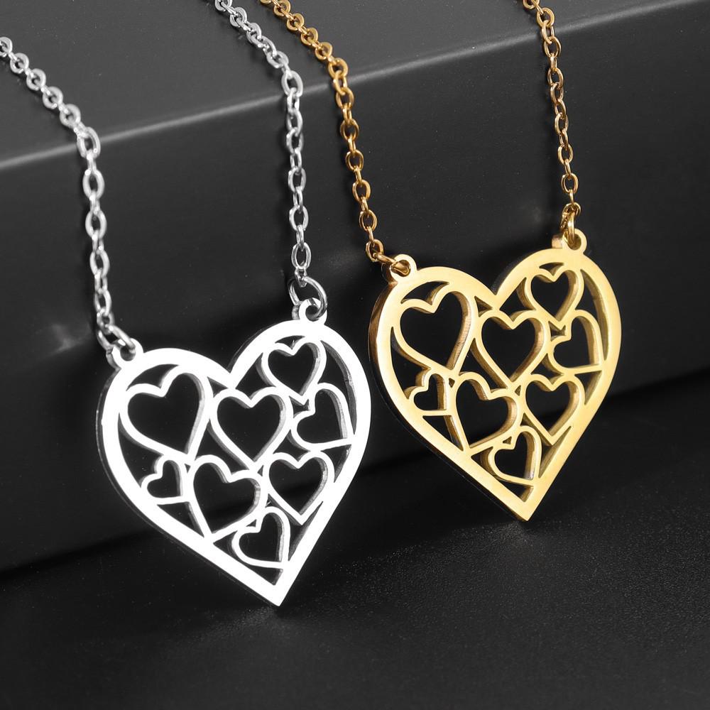 TEMU venda quente europeu e americano moda simples mulher coração oco clavícula colar de aço titânio em forma de coração pingente camisola cadeia