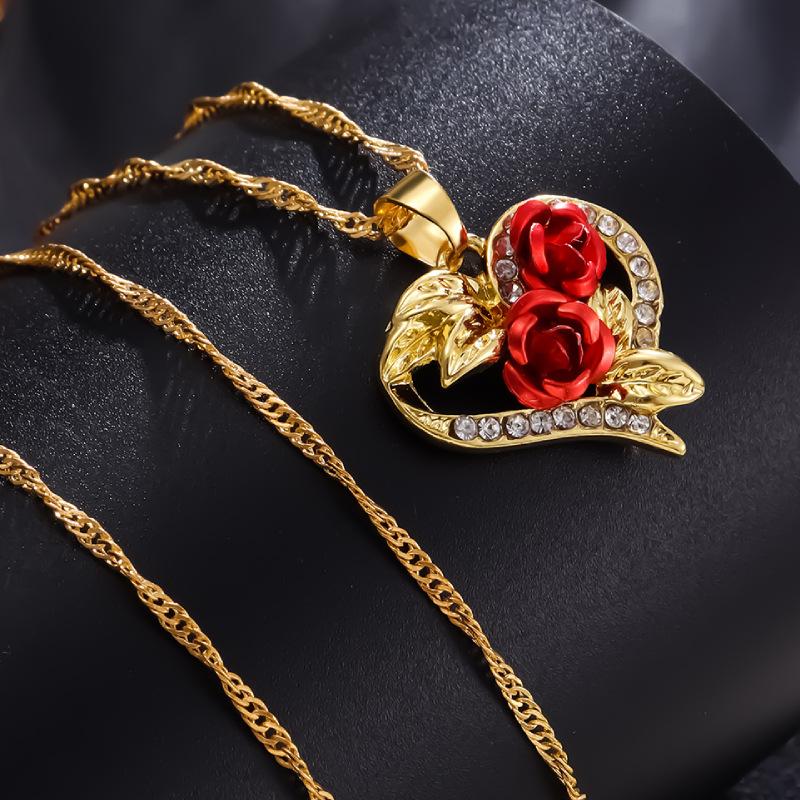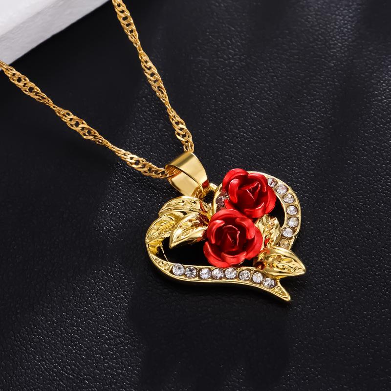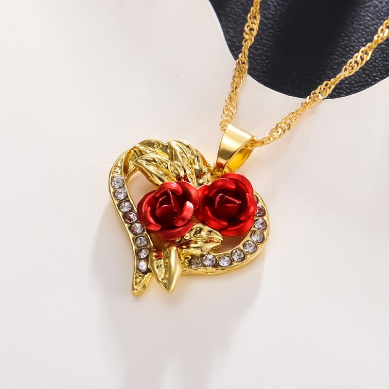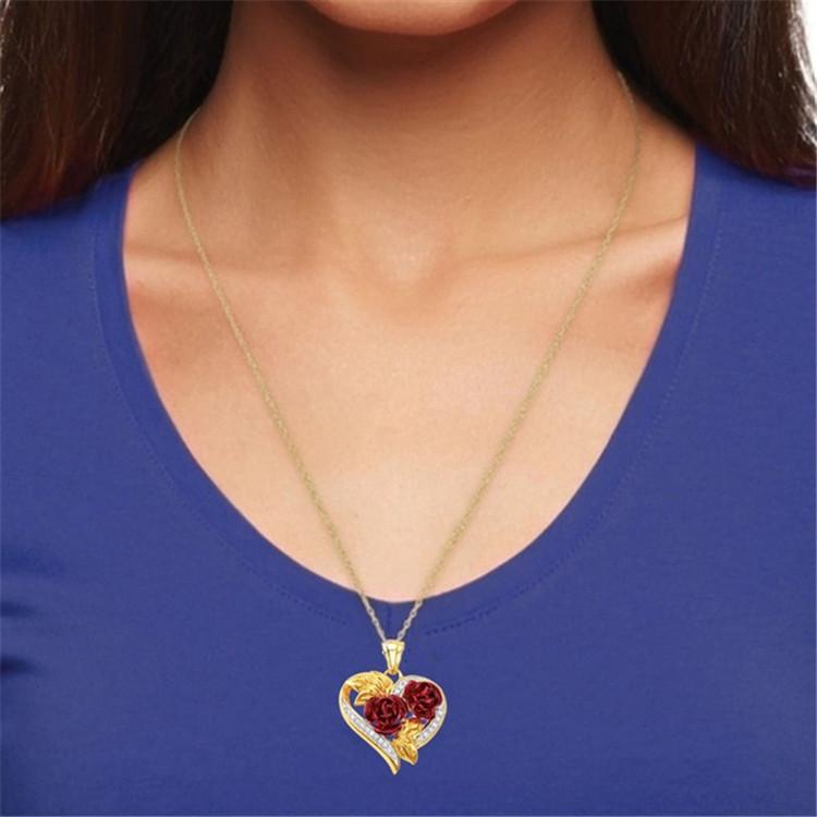 Colar Longrui Wish Novo Coração Rosa Vermelha Joias da Moda Europeia e Americana Acessórios Pingente de Diamante em Forma de Coração