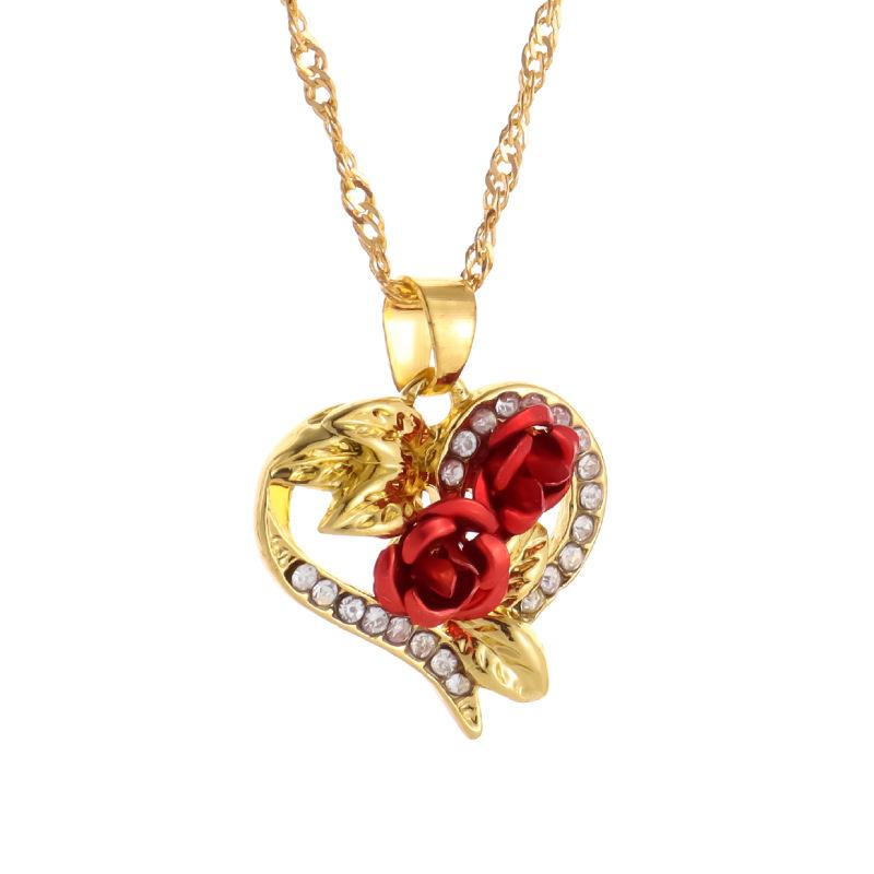Gold, Love rose diamond necklace-two colors