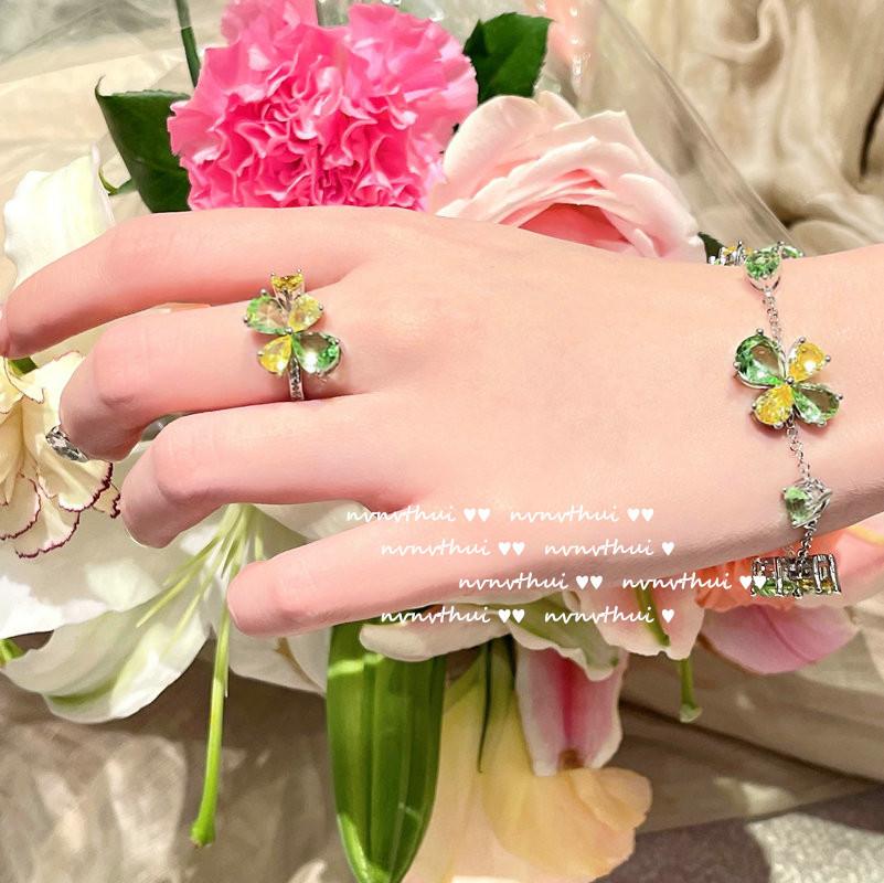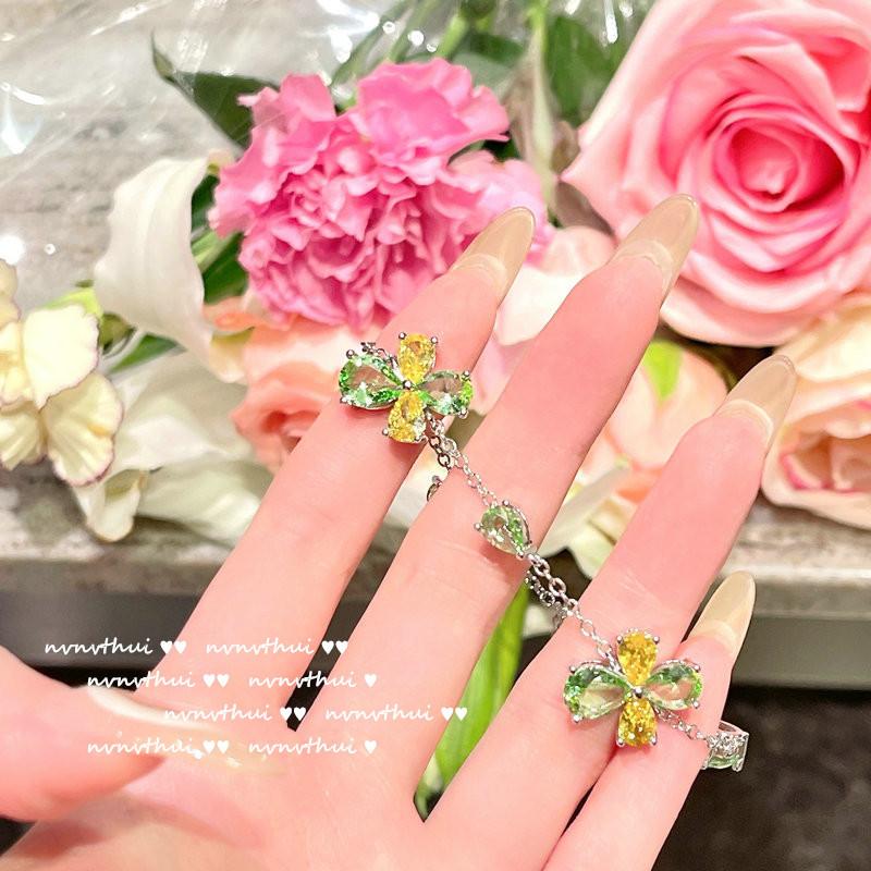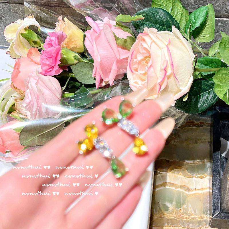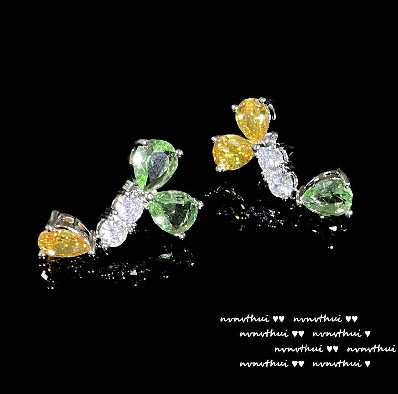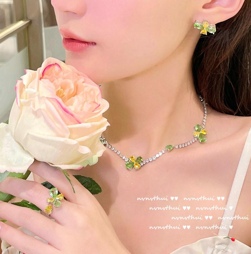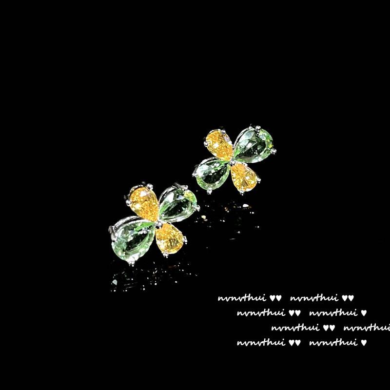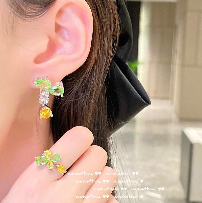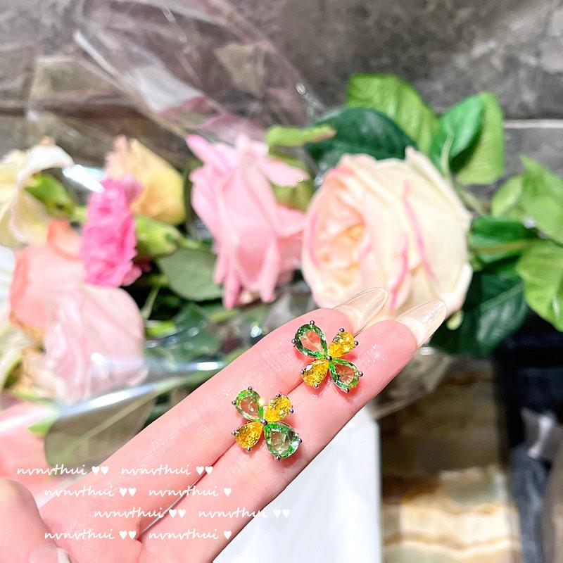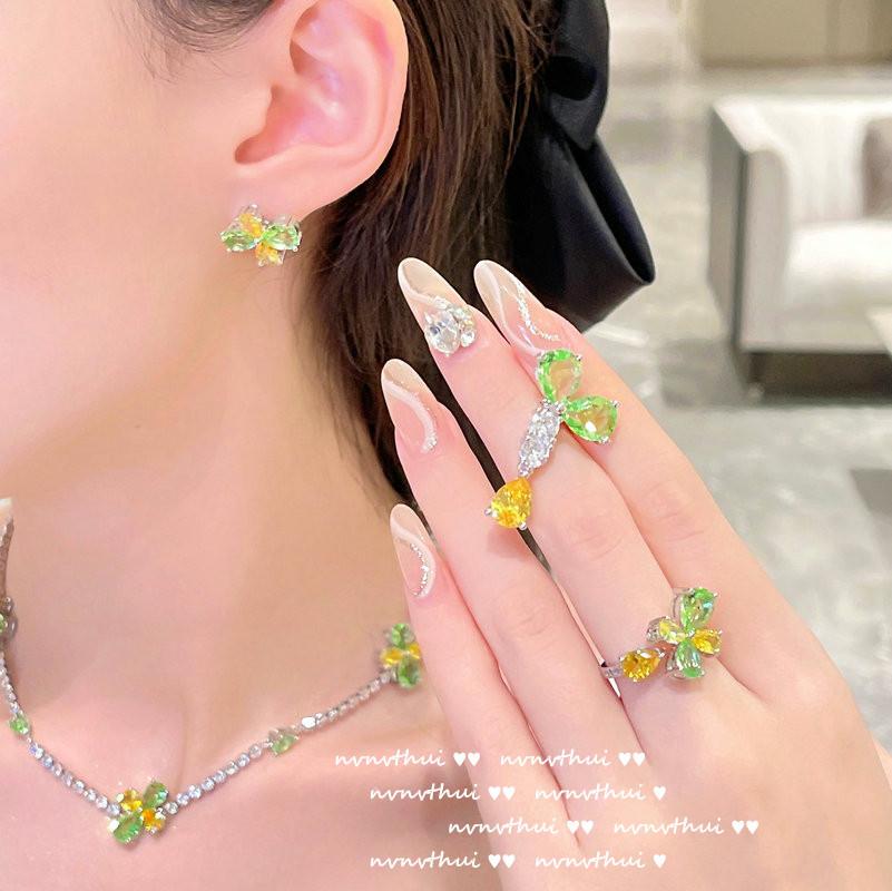 920Y green and yellow flower open ring, 920Y green and yellow flower short ear studs, 920Y bean seedling green...