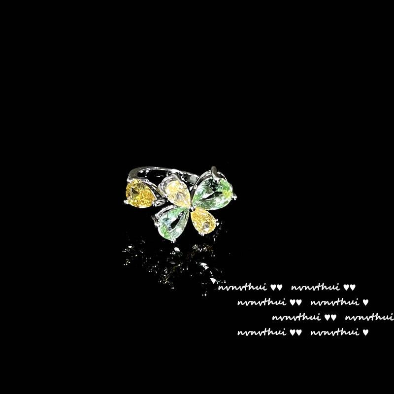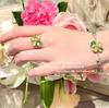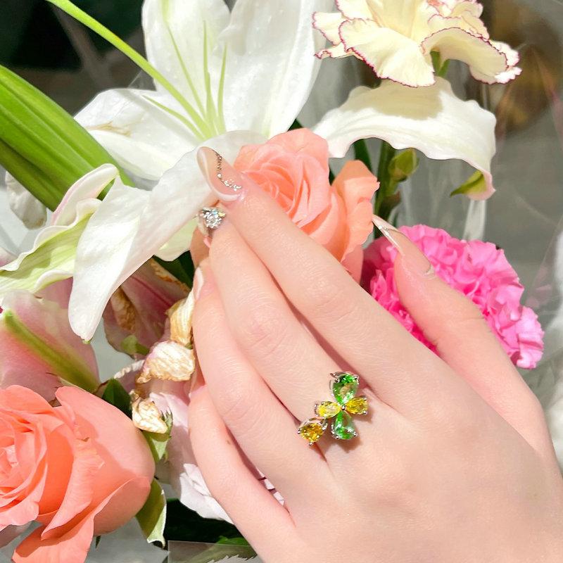 920Y green and yellow flower open ring
