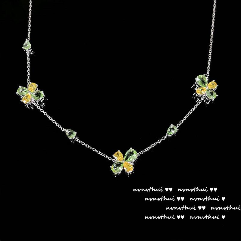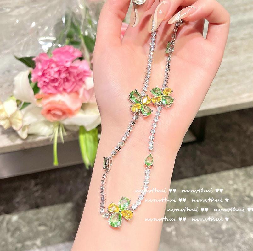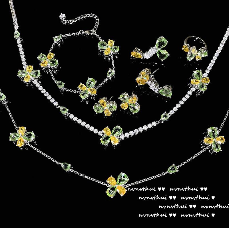 Colar de esmeralda pavão amarelo Cinderela Crepúsculo design noturno banhado a ouro 18K cor tesouro zircônia flor pulseira