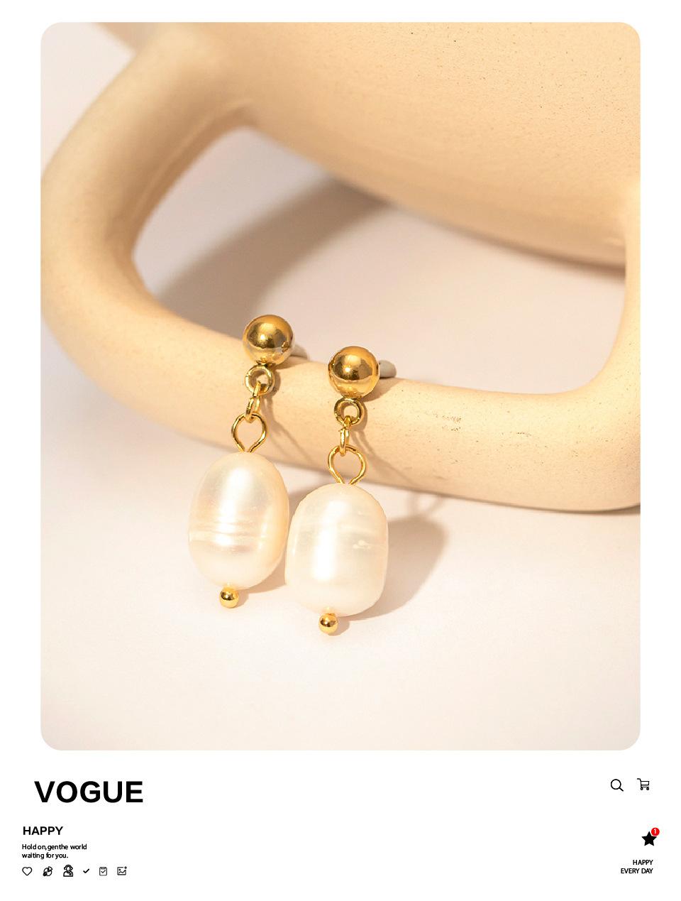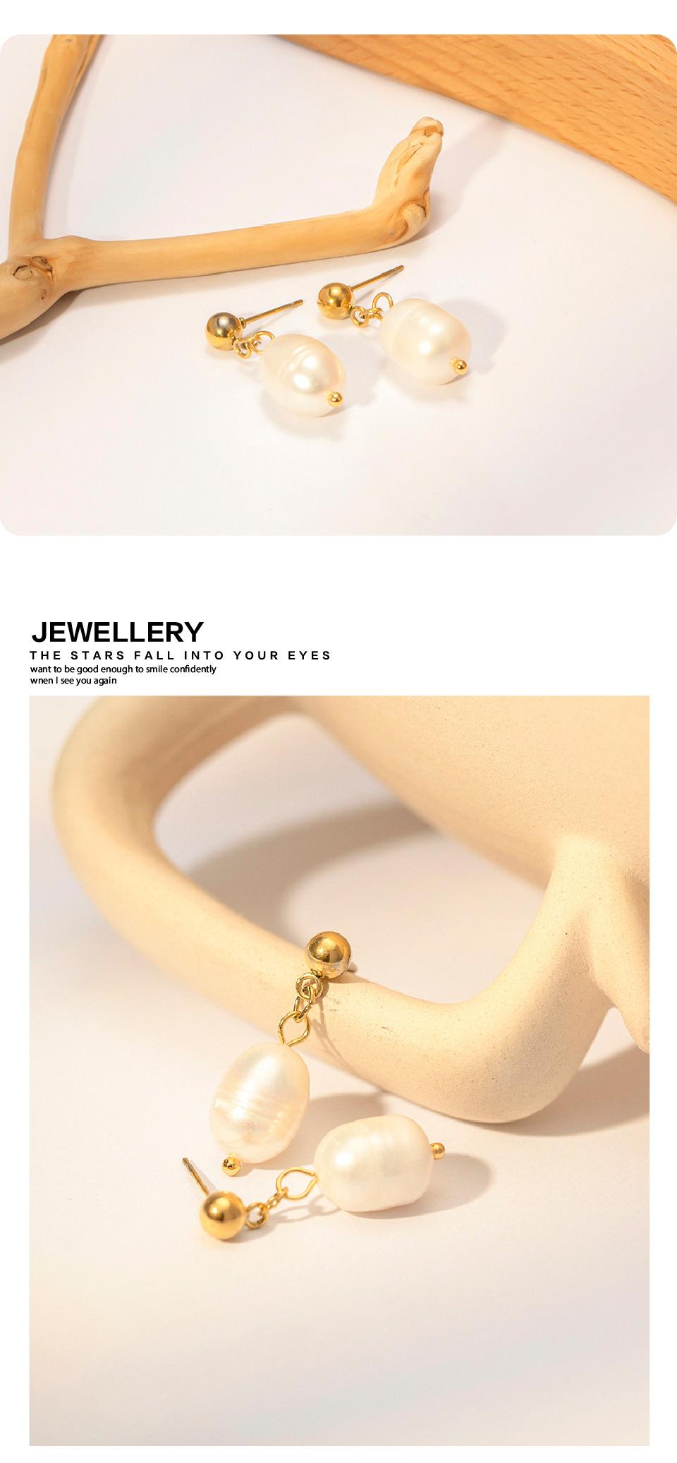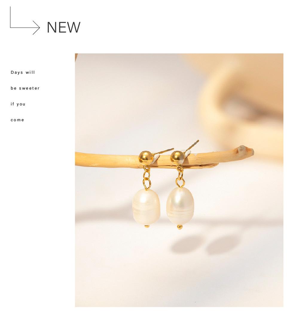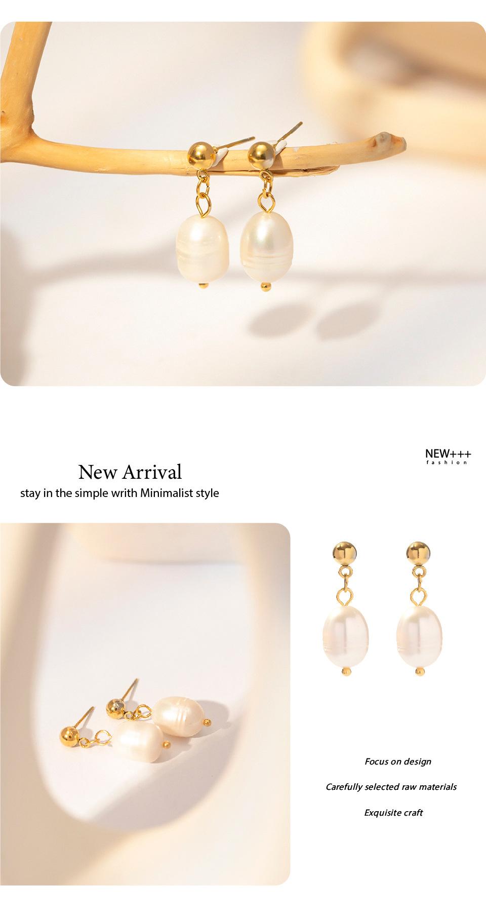 Brincos Pendentes Retrô Franceses de Pérola de Água Doce Taigang Não Desbota Ouro 18K Não Desbota Brincos Simples Elegantes para Mulheres