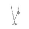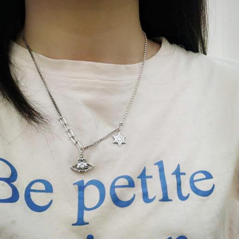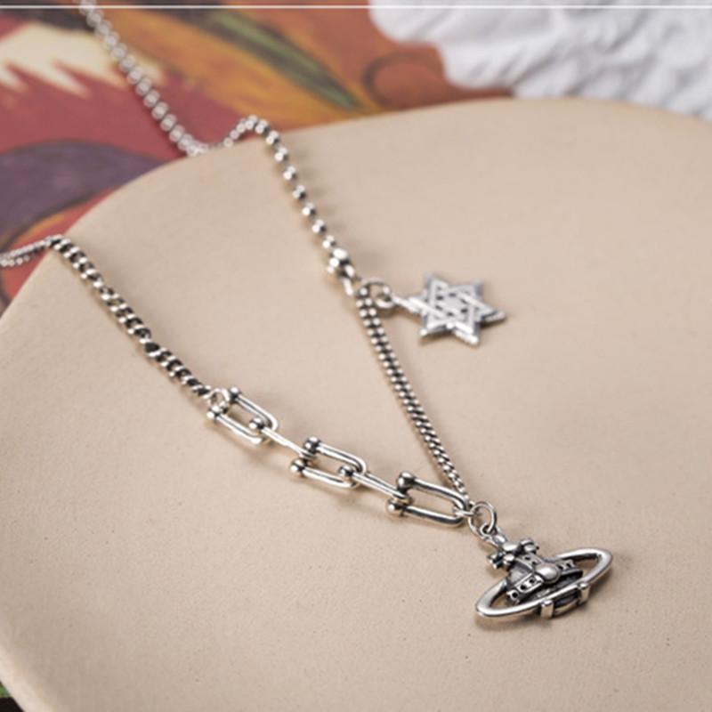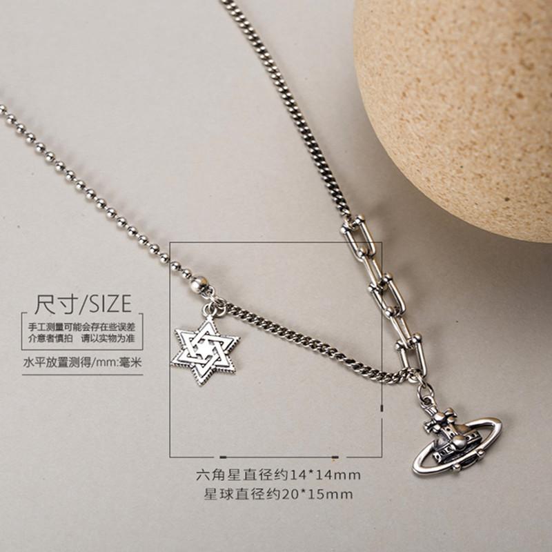 Estilo coreano S925 Sterling Silver Saturn Long Sweater Chain Colar Corrente de Celebridade da Internet Feminina Celebridade Niche Design Cold Style Clavícula Cadeia