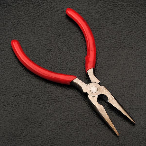 5. Alicate vermelho Finalidade: O alicate é essencial na montagem e desmontagem de relógios, podendo ser usado para remover grampos de cabelo, pinos, etc. de pulseiras de relógio.