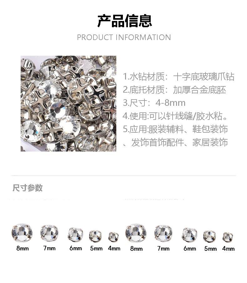 Fábrica atacado cruz fundo garra de vidro broca não gancho roupas de vidro costura manual broca roupas sapato saco decoração jóias de cristal