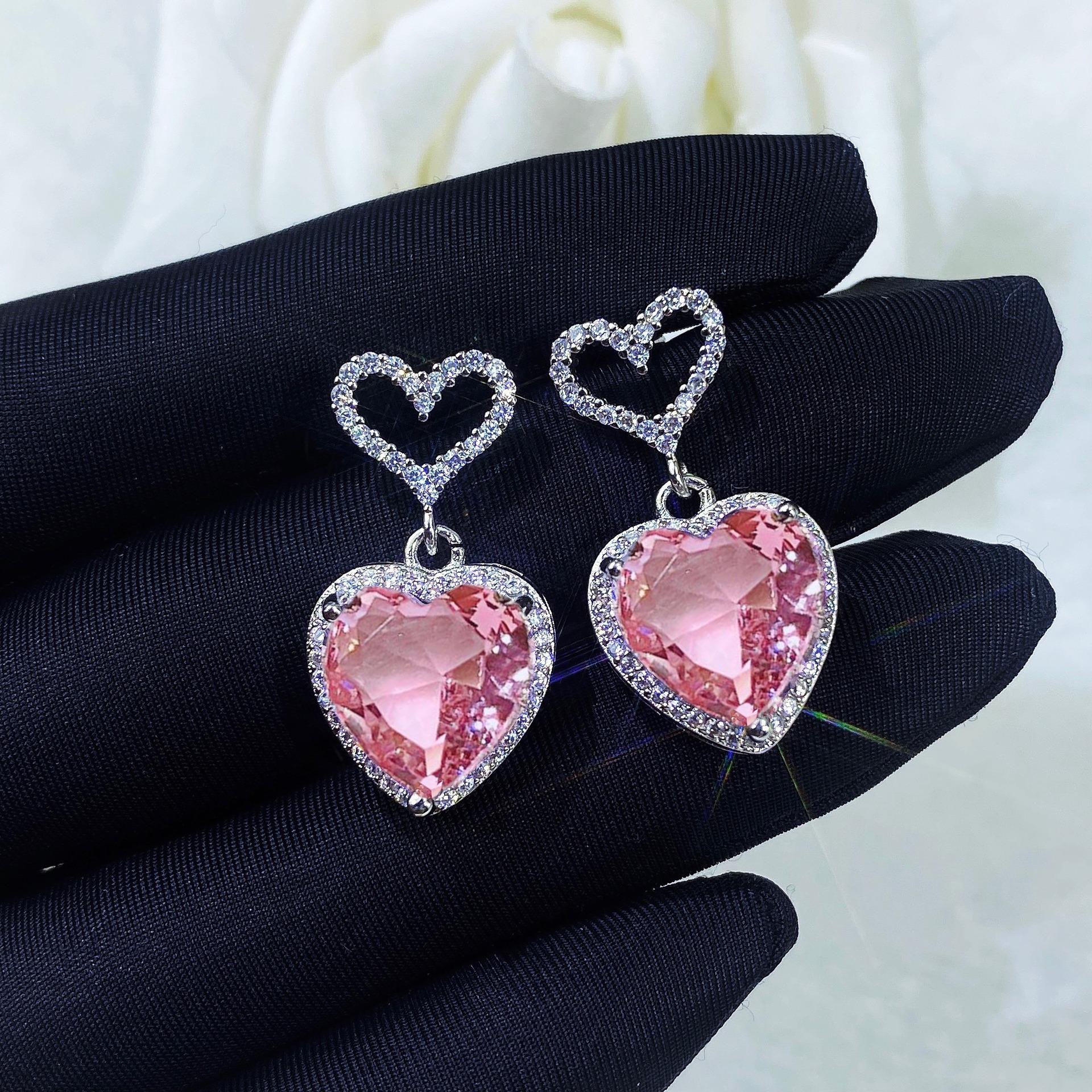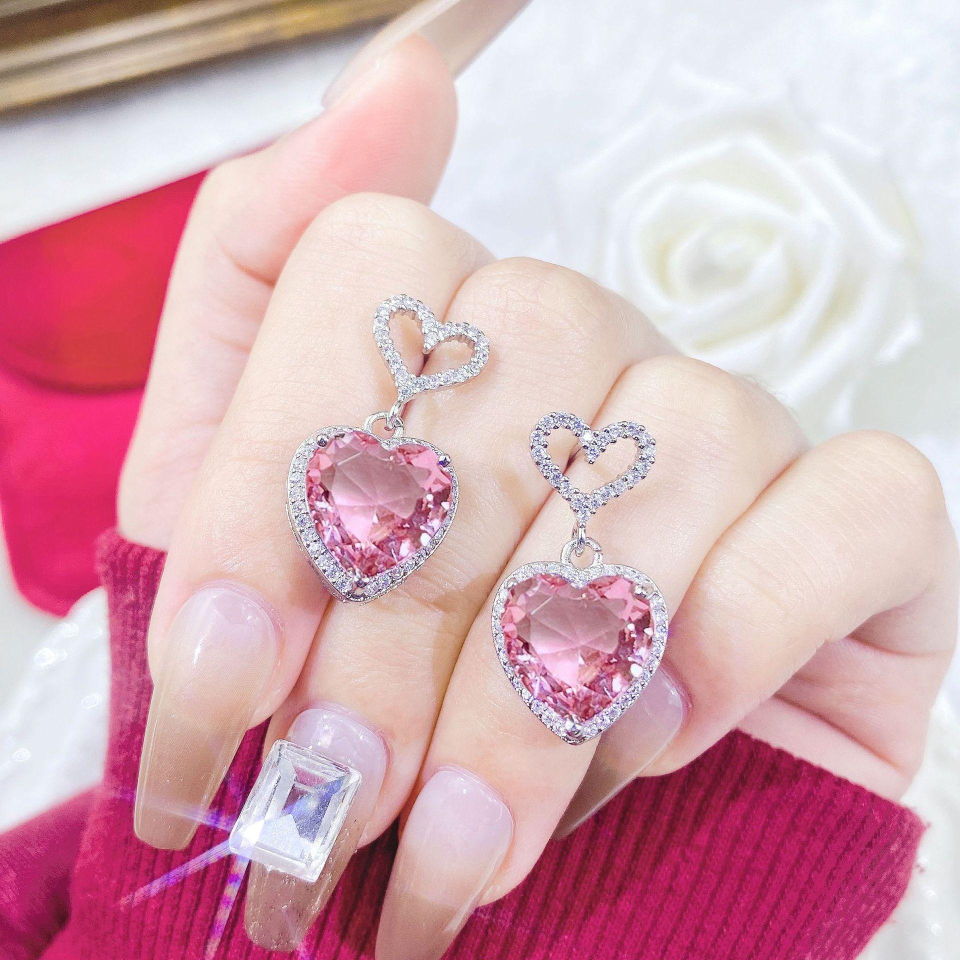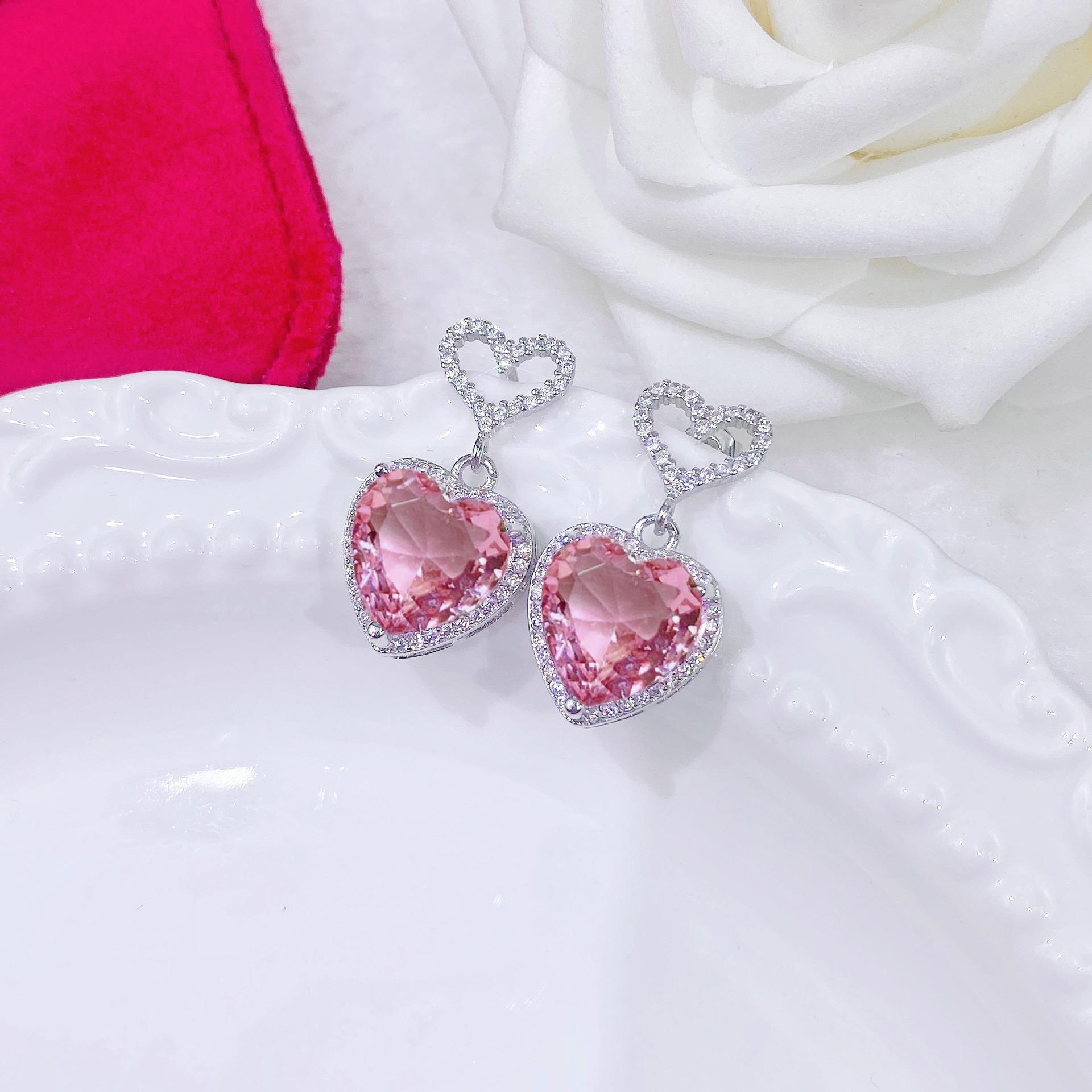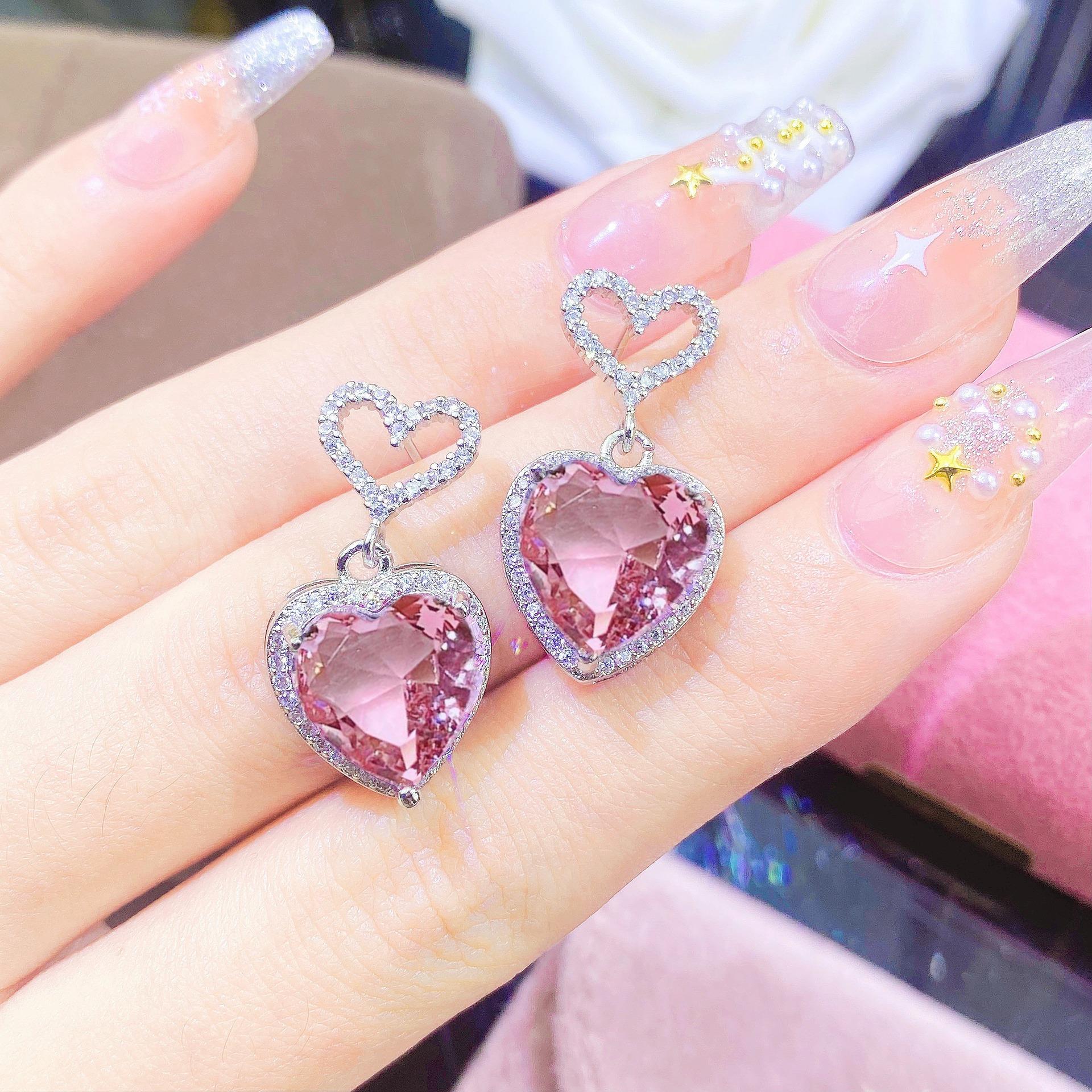 Compre Brincos de amor de luxo leve de alta qualidade brincos de design de nicho brincos de temperamento na moda doce zircão rosa brincos em forma de coração no atacado no Joom.pro