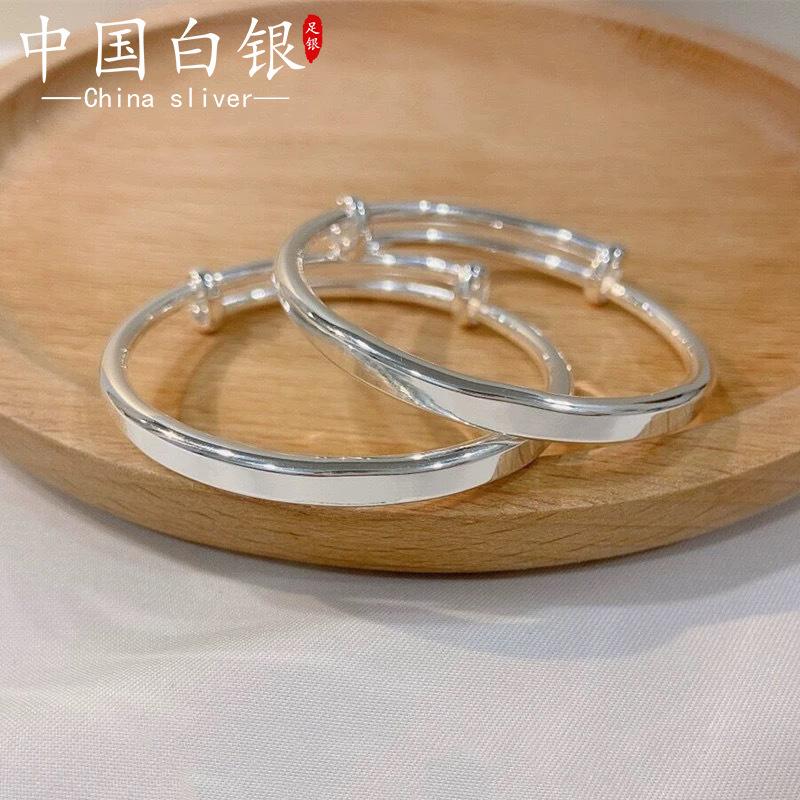 Pulseira de prata esterlina S999 para mulheres, tudo em um nicho, sólida, simples, push-pull, pulseira de prata pura, pulseira de bebê, presente de aniversário
