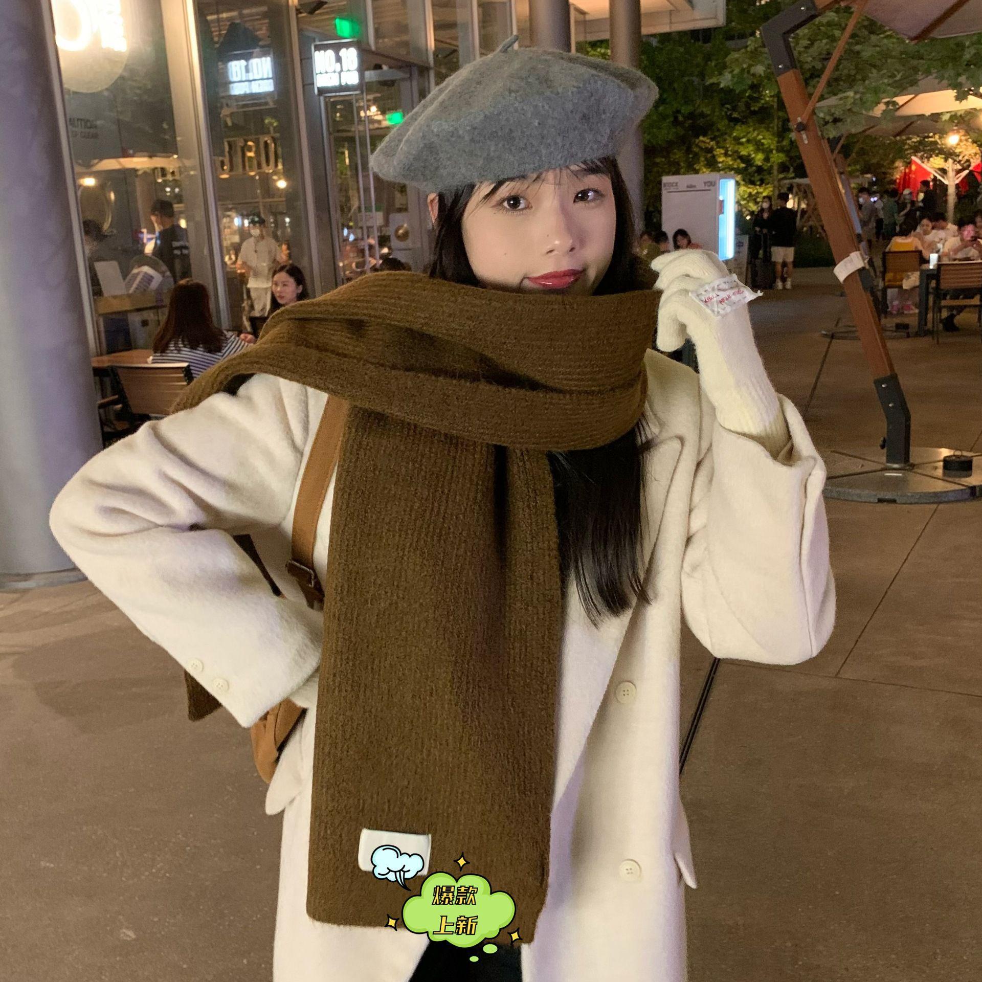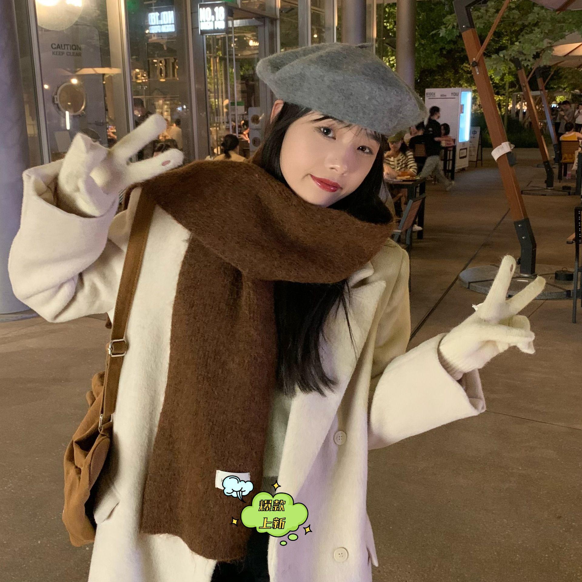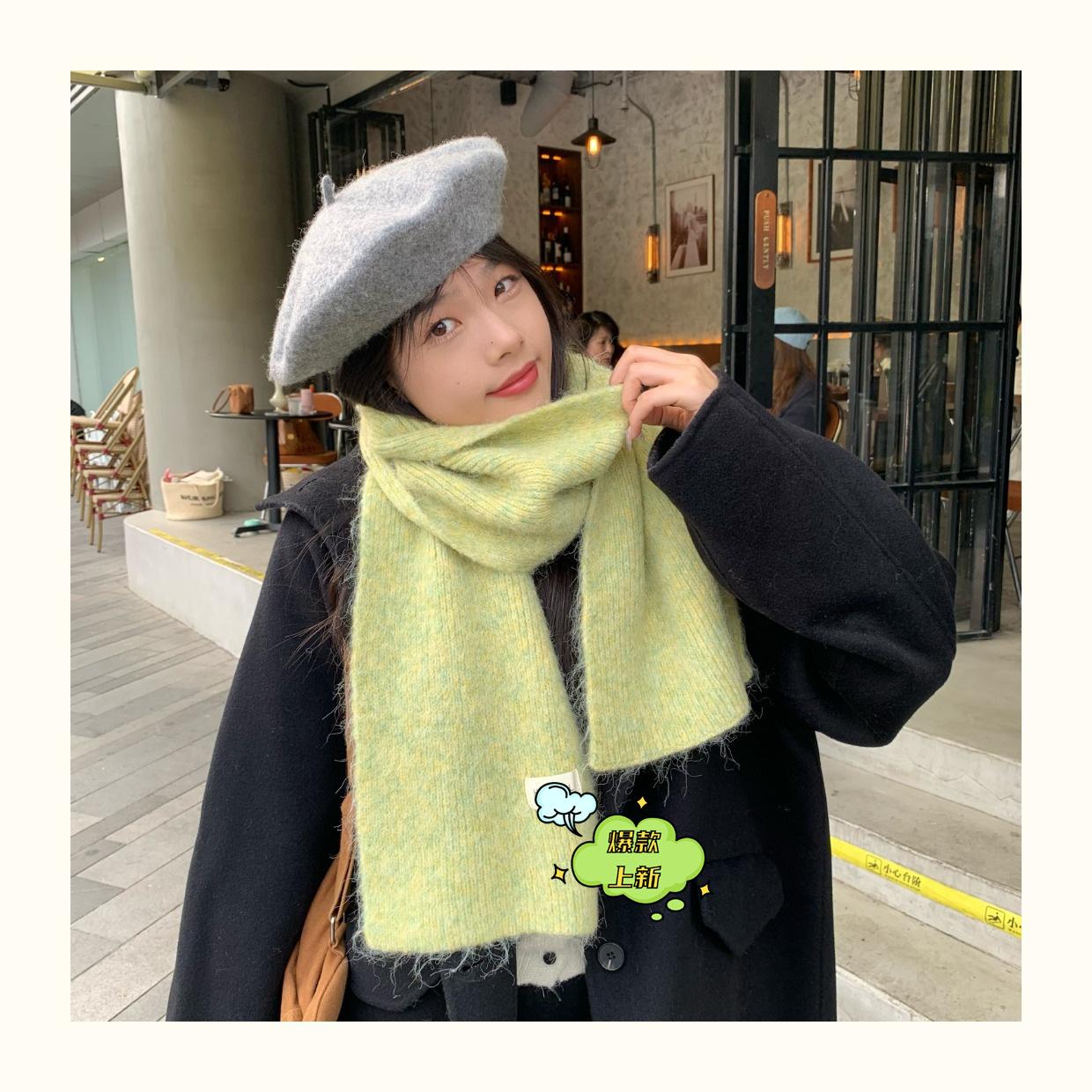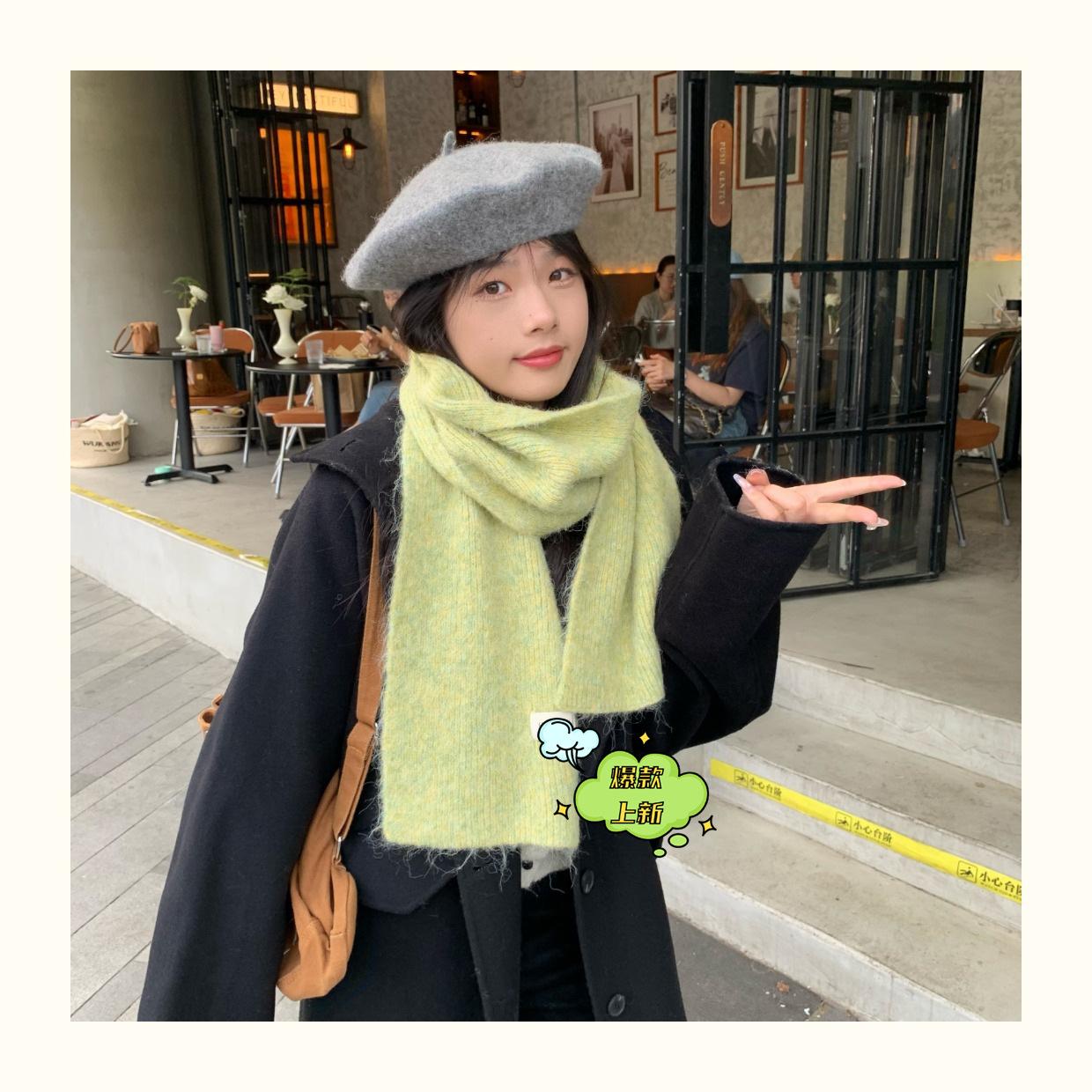 2022 nova lã misturada malha cachecol de lã meninas inverno coreano cor sólida Coringa estudantes pescoço quente