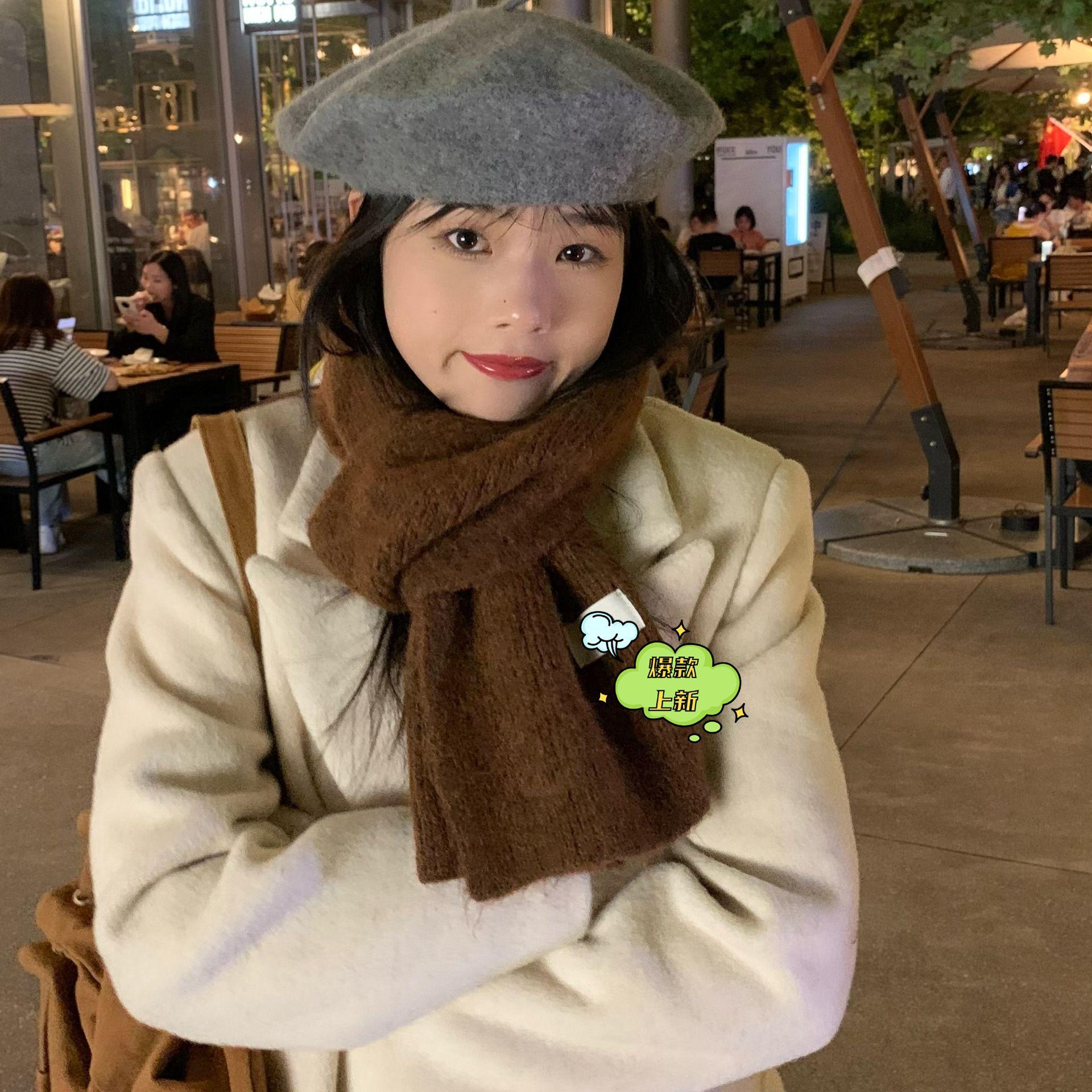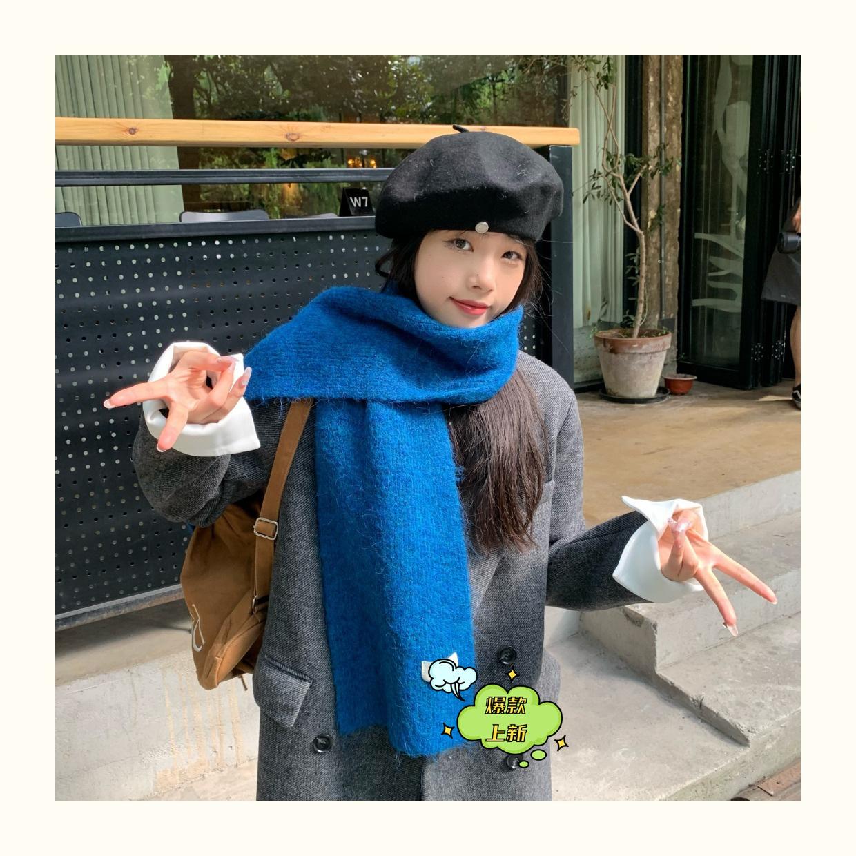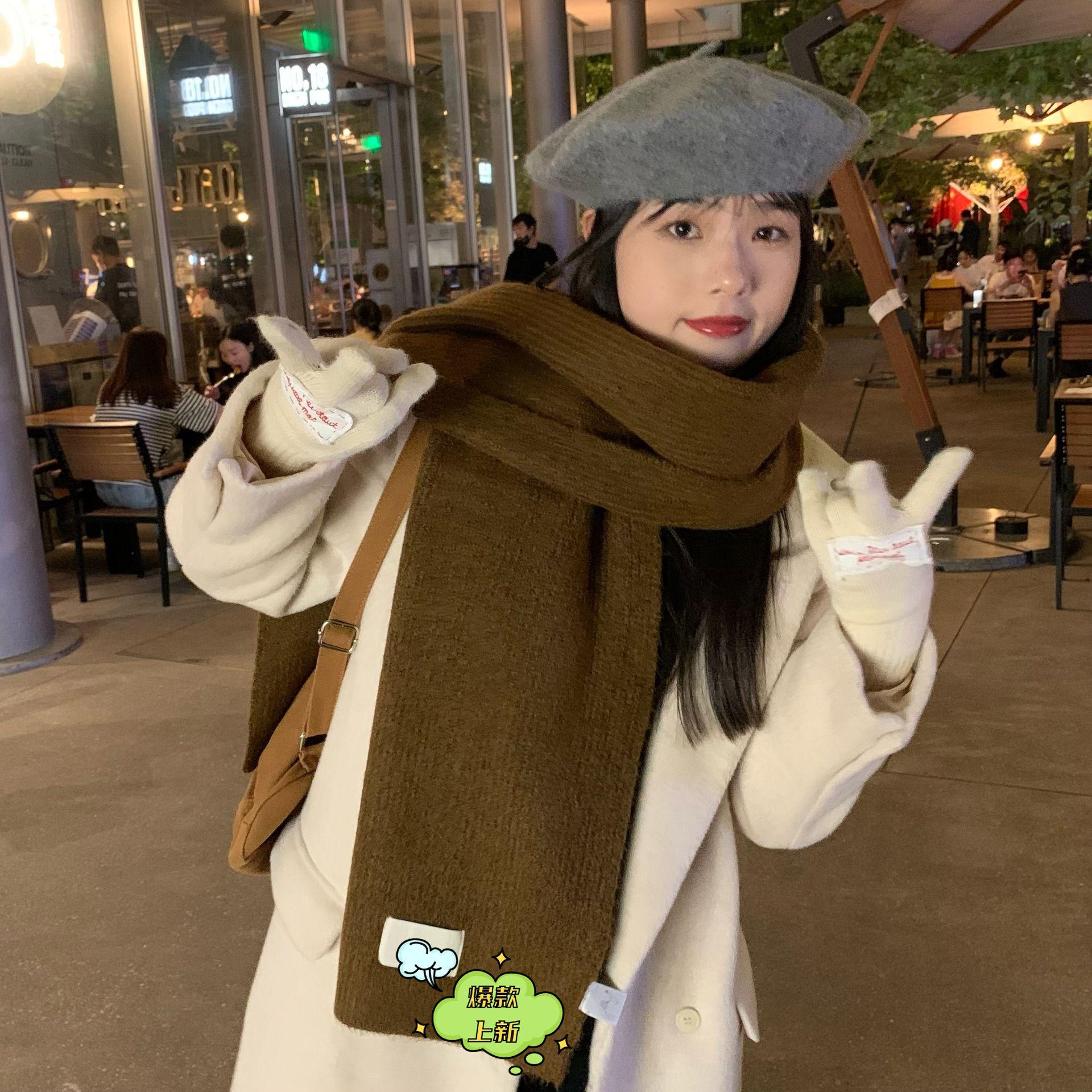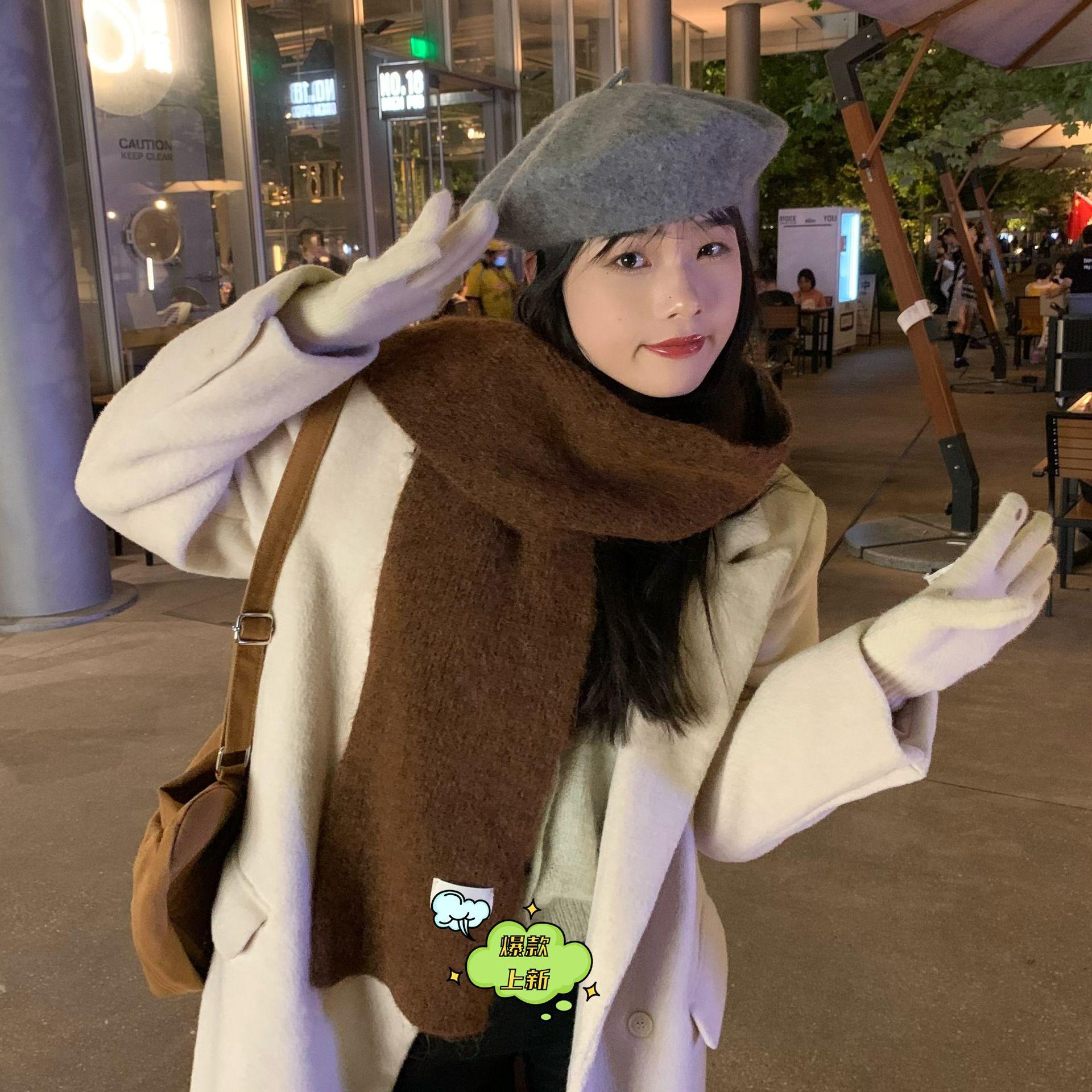 2022 nova lã misturada malha cachecol de lã meninas inverno coreano cor sólida Coringa estudantes pescoço quente
