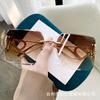Óculos de sol femininos da moda sem bordas 2024, óculos de sol com design de metal oco duplo, estilo europeu e americano, estilo double love
