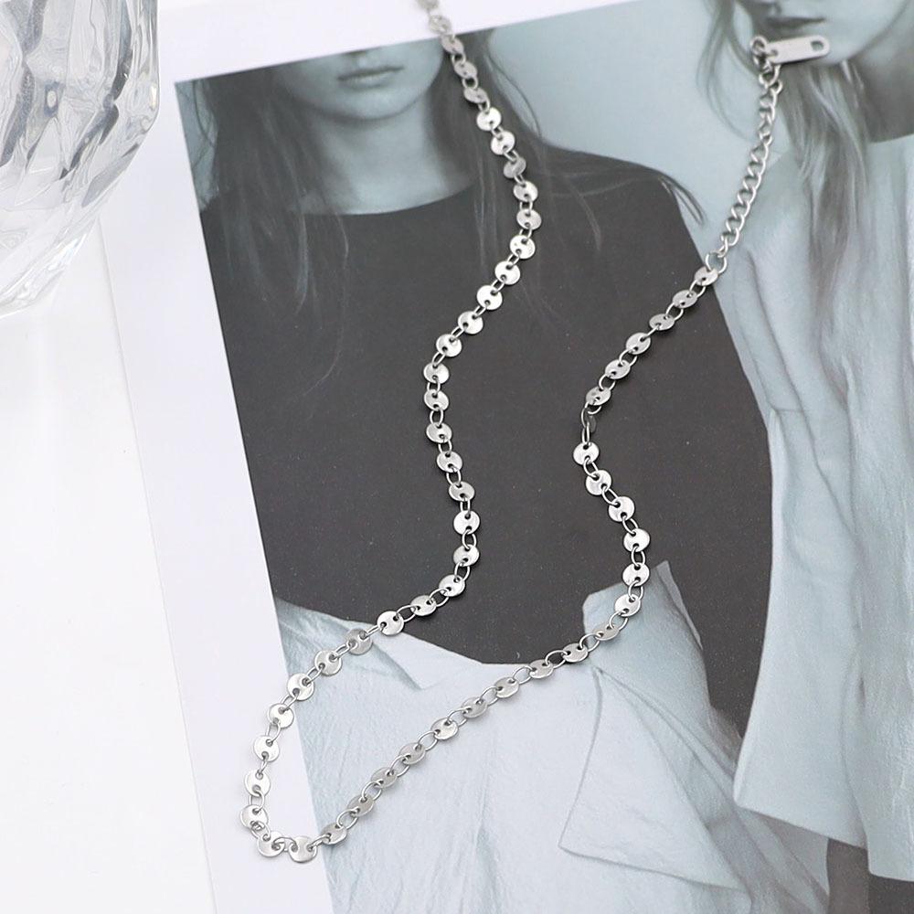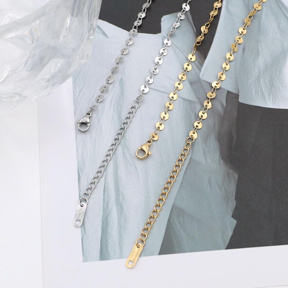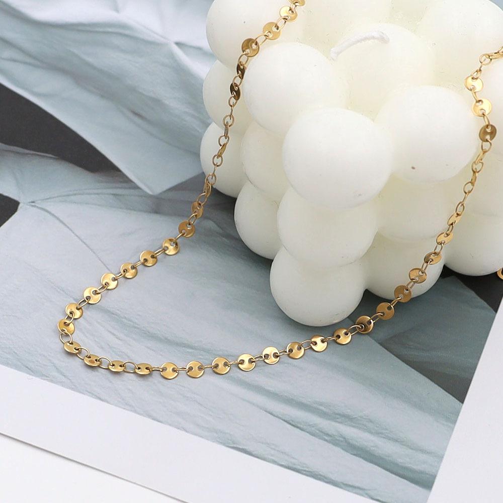 Colar de corrente de disco de aço de titânio, joia de moda transfronteiriça simples, corrente de pescoço de ouro 18k que não desbota, versátil e sofisticado para mulheres