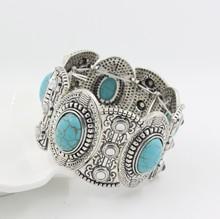 Pulseira de moda europeia e americana textura retrô oca incrustada pulseira de turquesa pulseira de joias