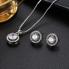 Conjunto de brincos de colar de diamantes de joias europeias e americanas elegantes e elegantes, conjunto de duas peças, brincos redondos de diamantes