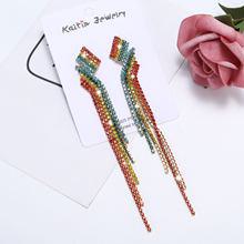 Brincos longos de temperamento exagerado europeu e americano, brincos de pingente de borla de arco-íris com personalidade colorida, brincos da moda