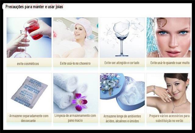 Quando o produto não estiver em uso, coloque-o em local não exposto ao vento, como uma caixa de joias. Isso pode evitar que a superfície seja corroída pelo oxigênio do ar e evitar o contato com qualquer líquido.