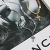 XL322 Europeu e americano barroco contas cruz plano costura estrela corrente pulseira colar conjunto titânio aço banhado a ouro