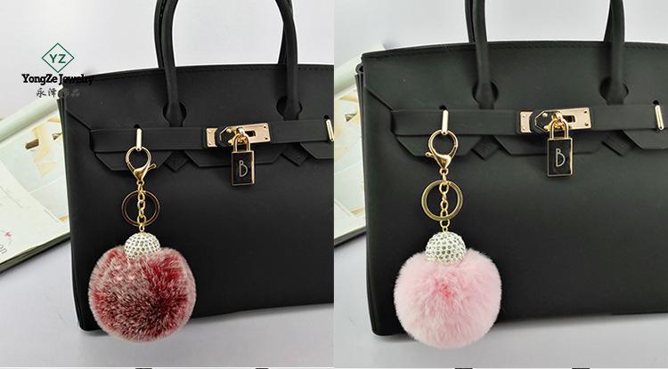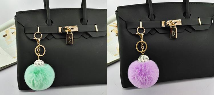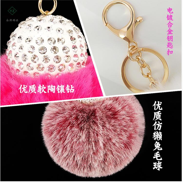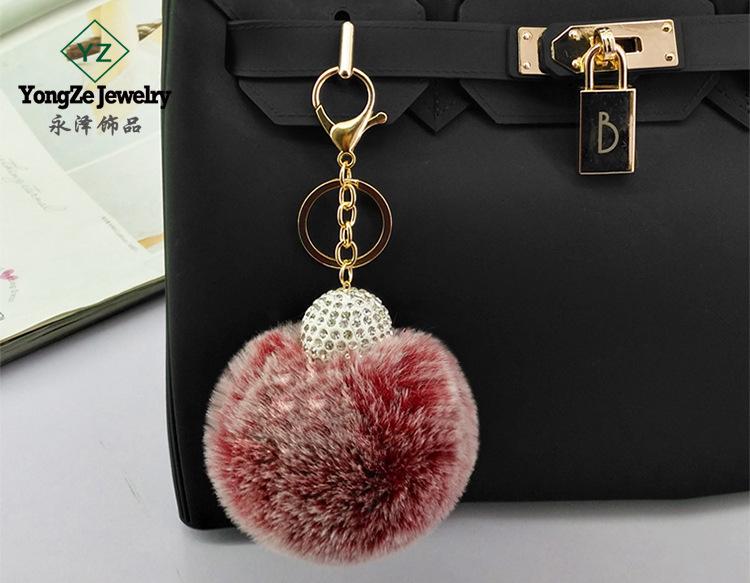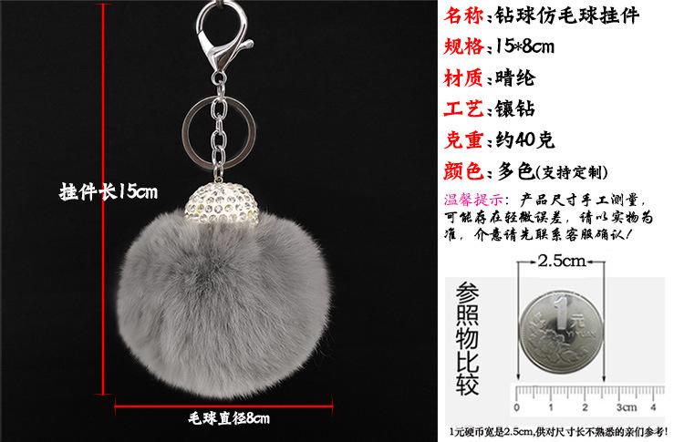 | | Chaveiro com pingente de bola de pelo artificial de 8 cm, pingente de bagagem, acessórios de joias, suporte de atacado, processamento de atacado |