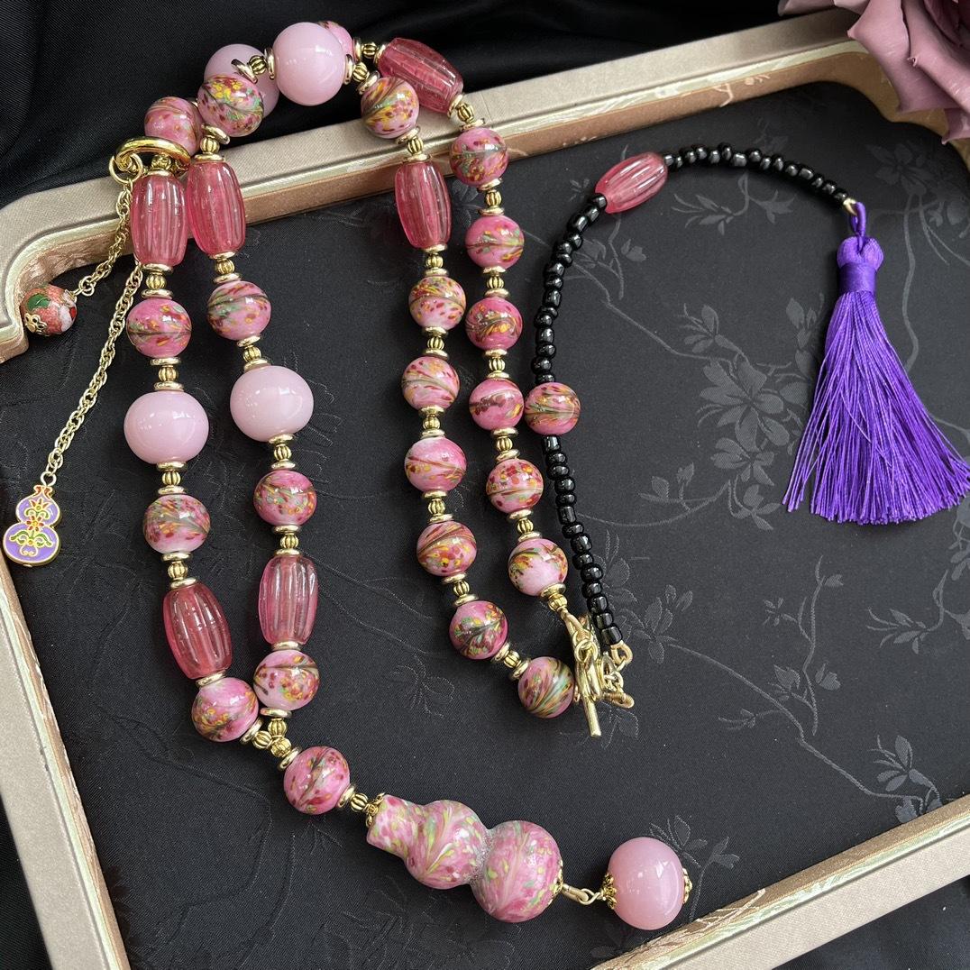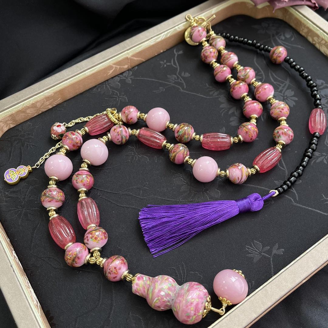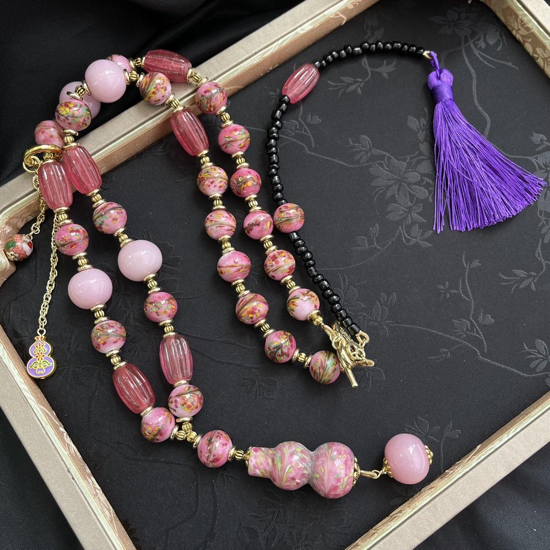 Honan Médio Antigo vintage Novo Chinês Coringa Estilo Rosa Phoenix Cauda Pingente Cabaça Pingente Colar Esmalte