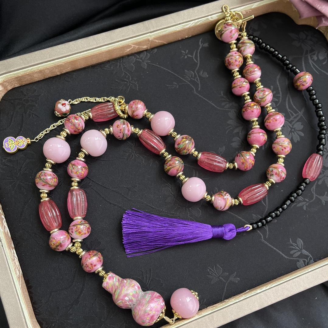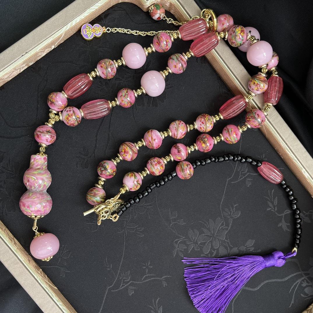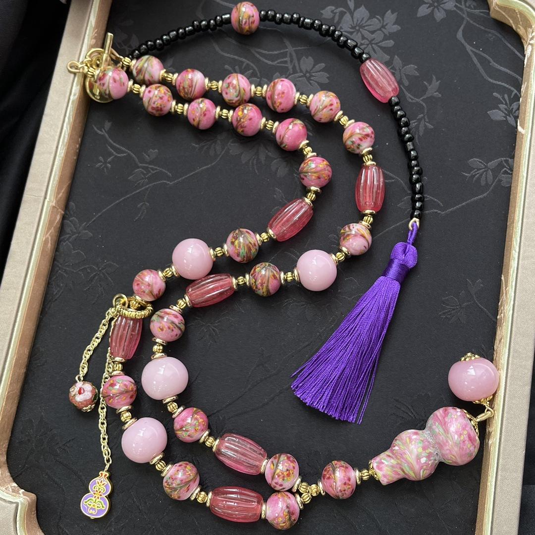 Honan Médio Antigo vintage Novo Chinês Coringa Estilo Rosa Phoenix Cauda Pingente Cabaça Pingente Colar Esmalte