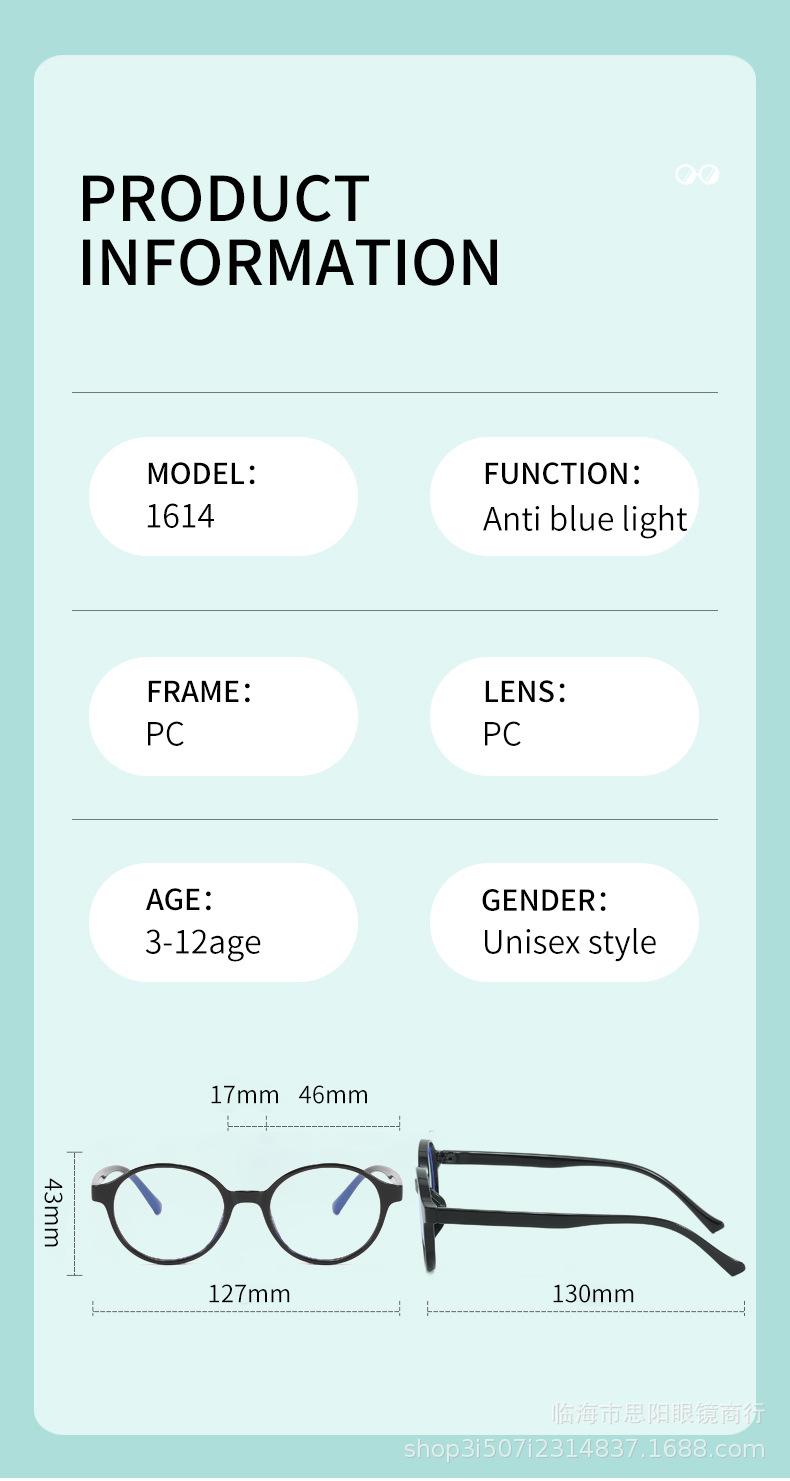 Nova Armação de Óculos Infantil com Dobradiças Meninos e Meninas Bebê Anti-Luz Azul Espelho Plano Óculos de Estudante Ultraleve 1614