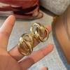 Q anel duplo intertravado design oco puxar metal cheio cheio de pequenos detalhes risca deformação forma oval J1-9