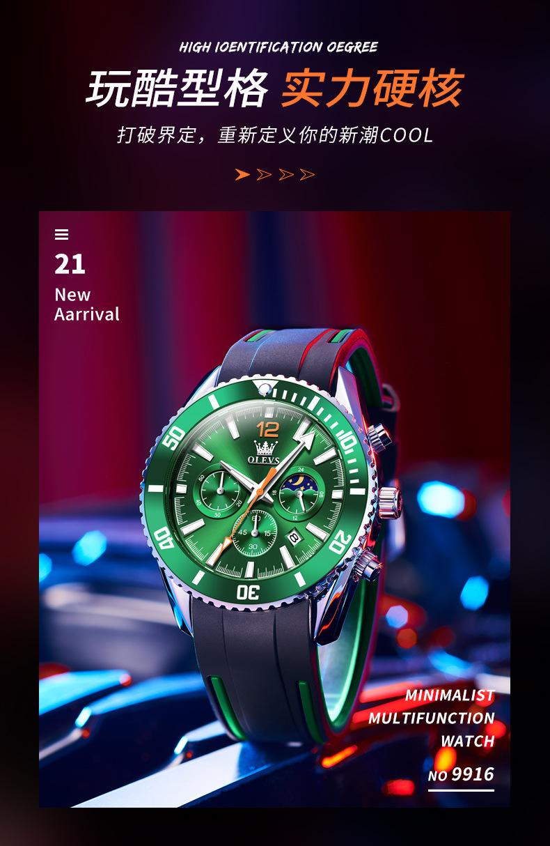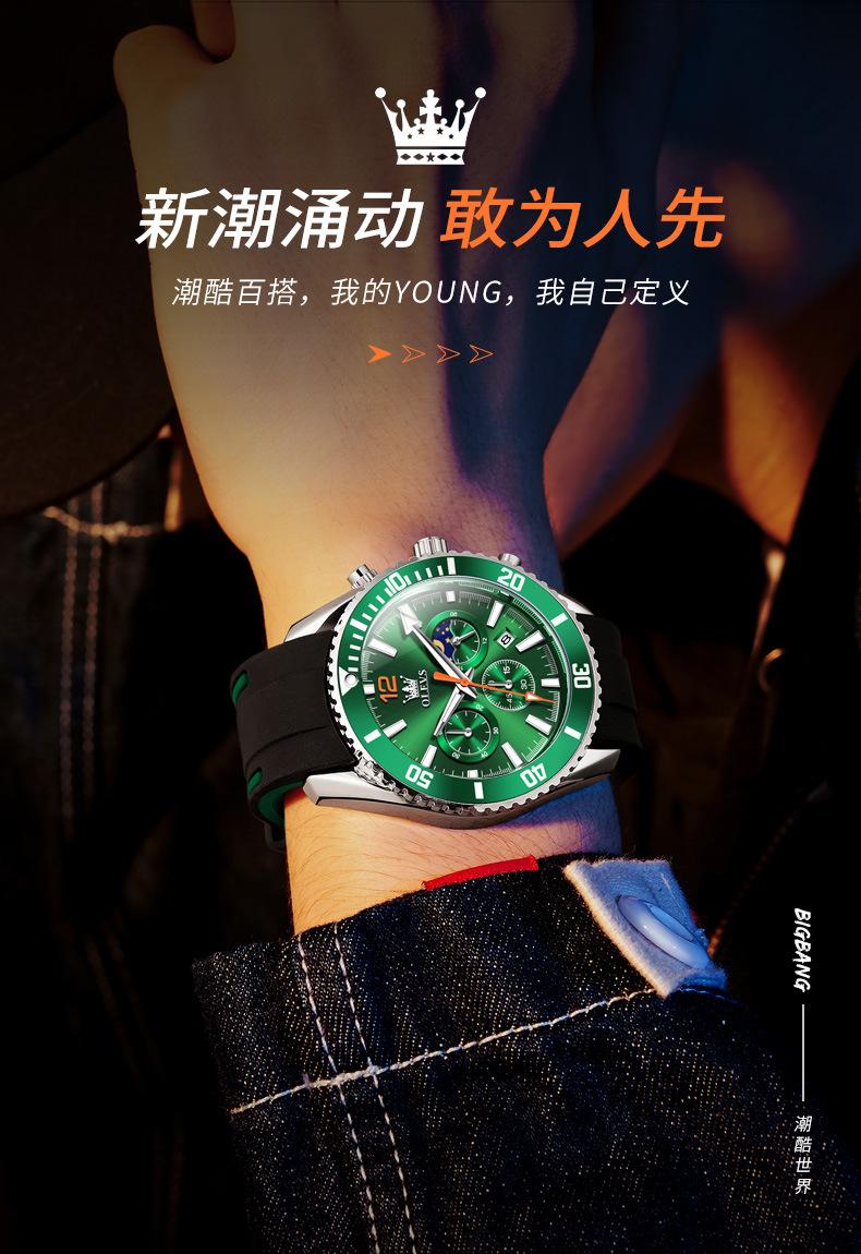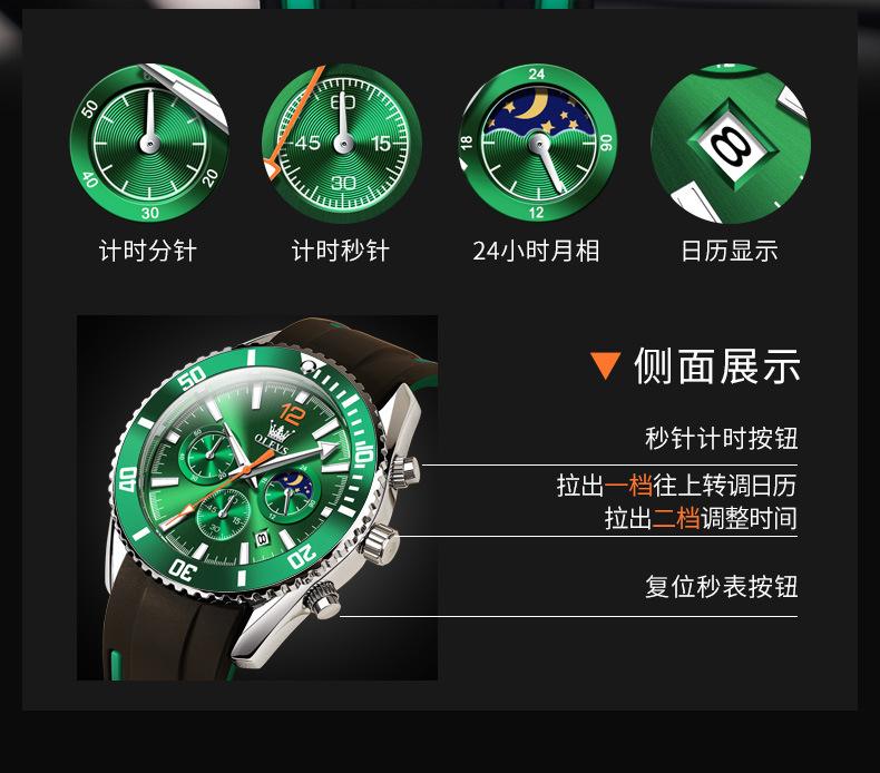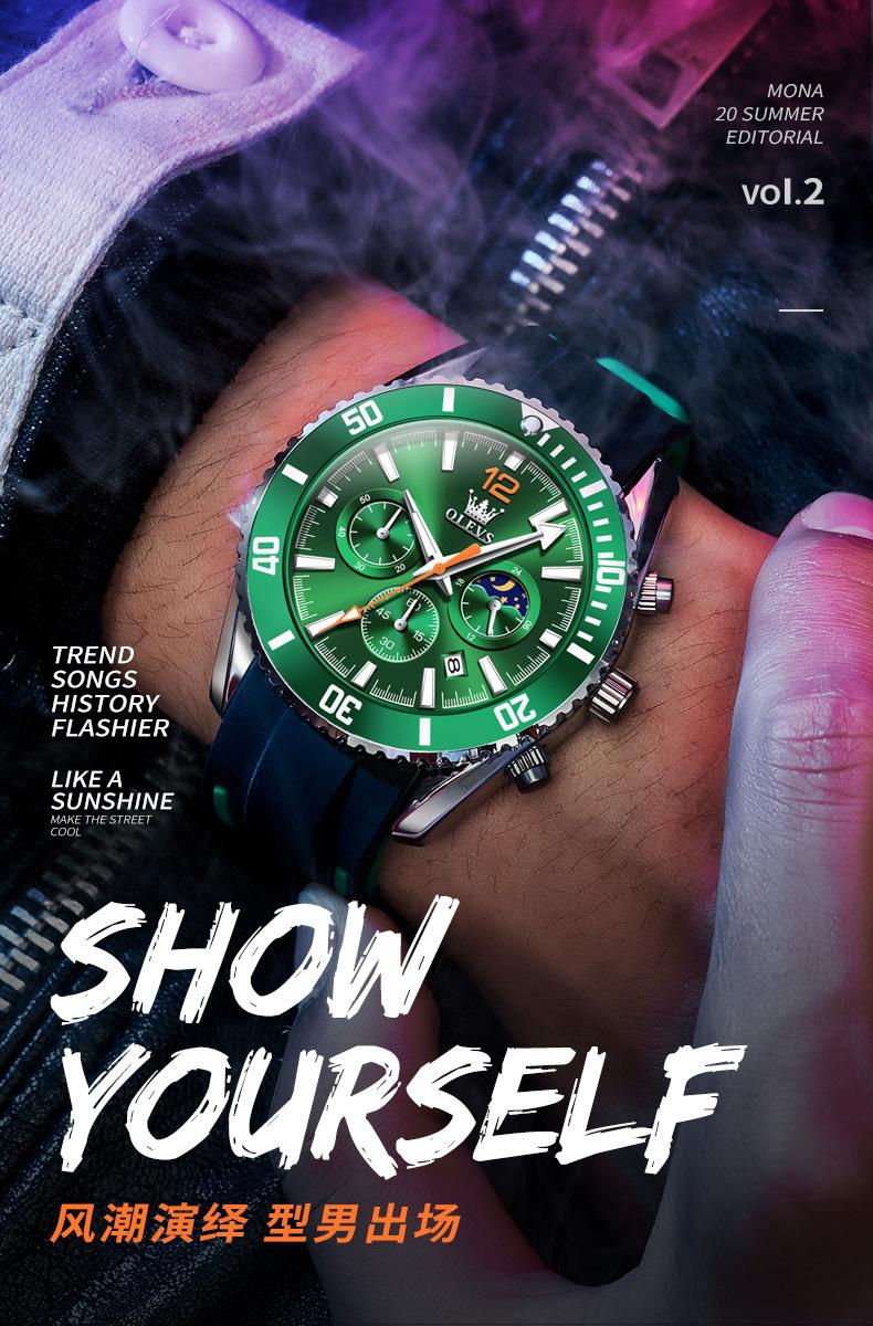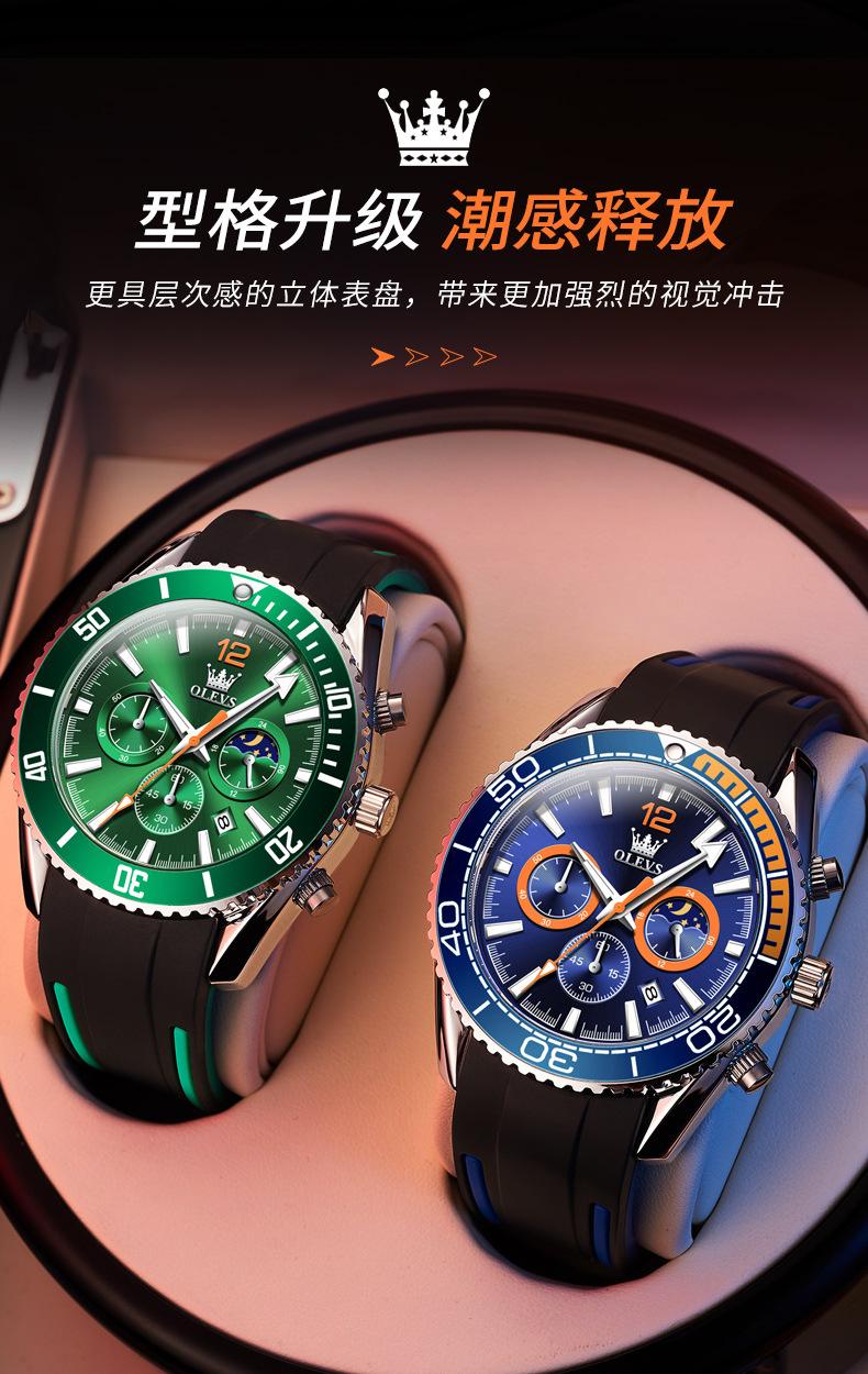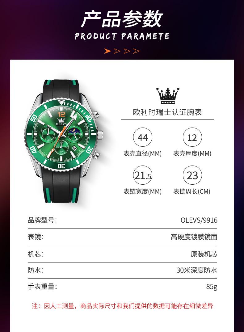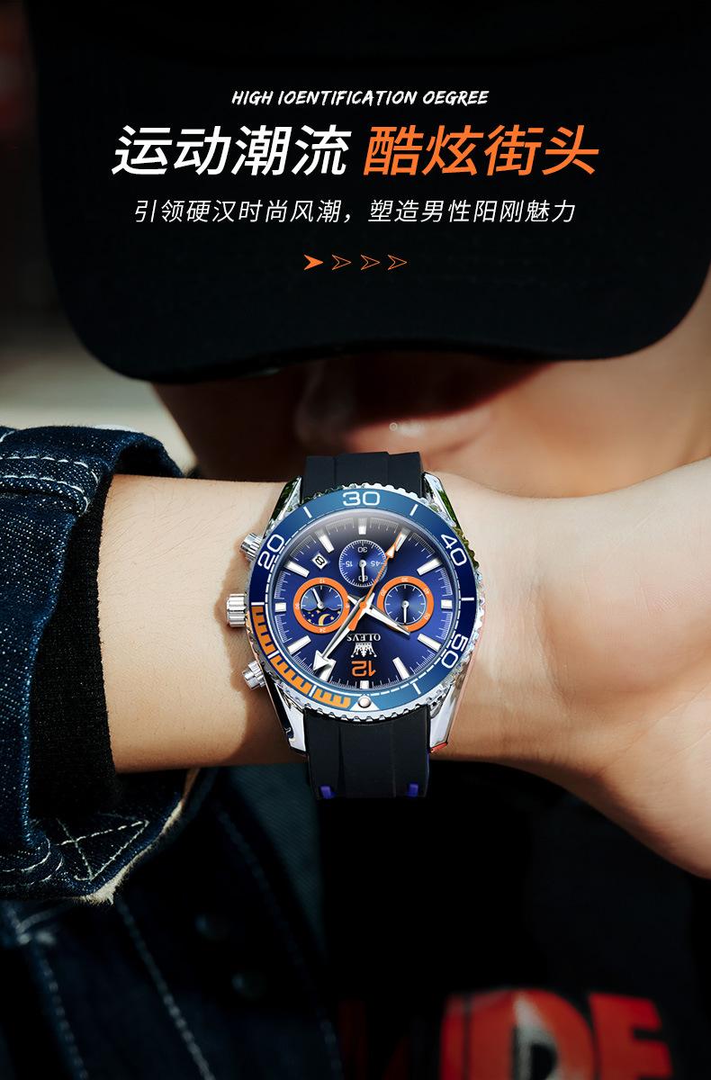 【Espessura】: 12 mm, mostrador grande e moderno com três olhos e seis agulhas!